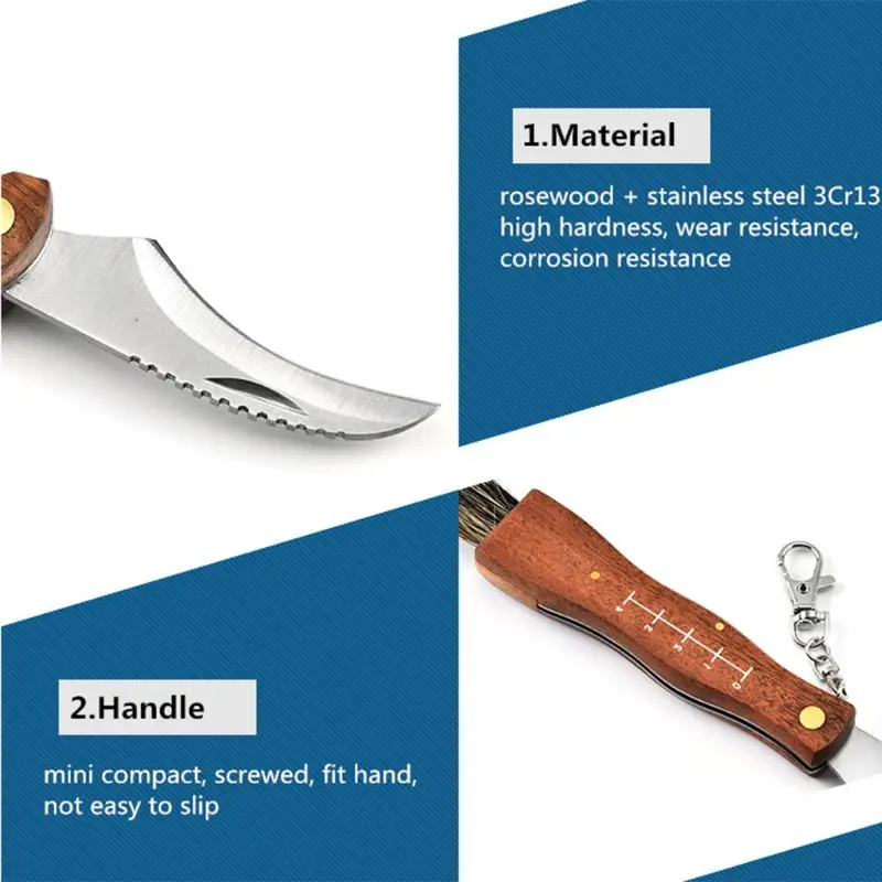 Мини грибной нож с рукояткой из розового дерева для кемпинга, складные ручные инструменты для самообороны