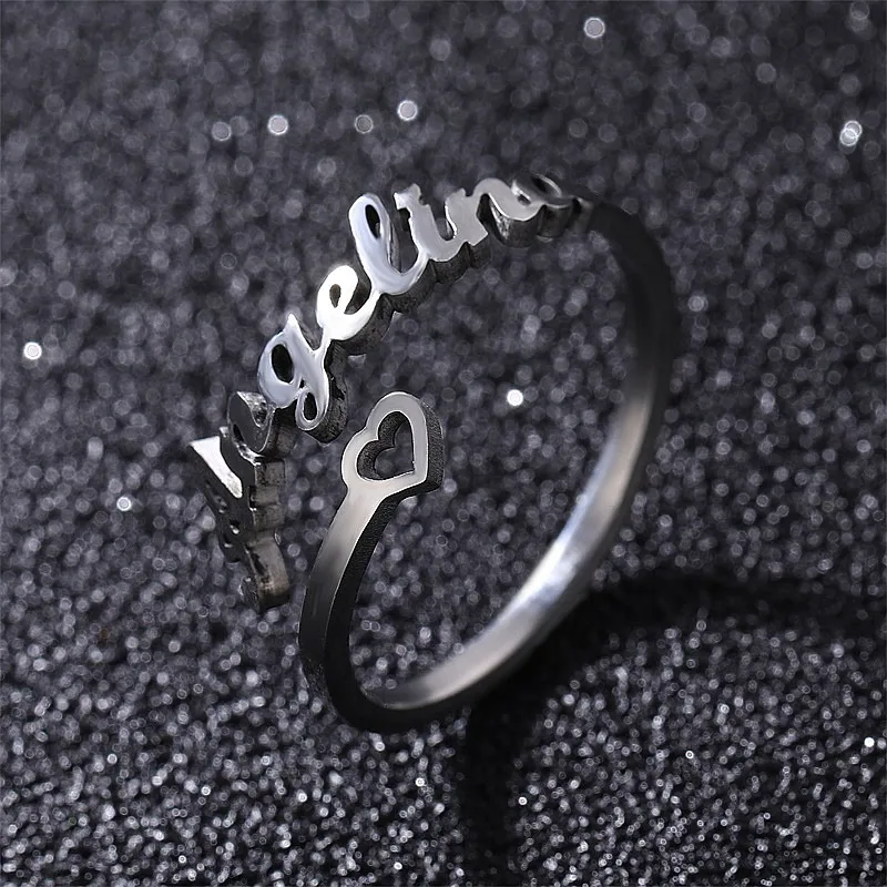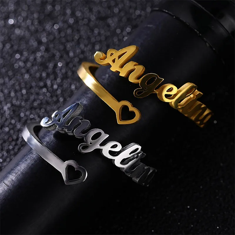 Регулируемое кольцо на заказ, персонализированное кольцо с именем в форме сердца, свадебные кольца из нержавеющей стали в форме сердца для женщин, ювелирные изделия на годовщину