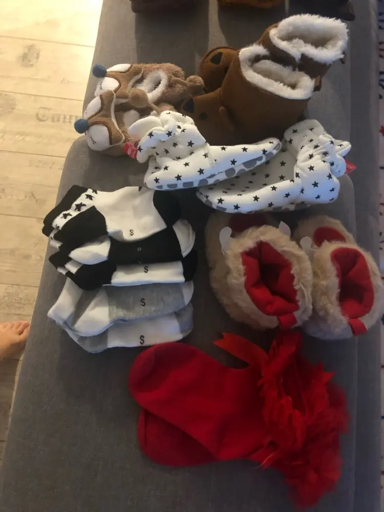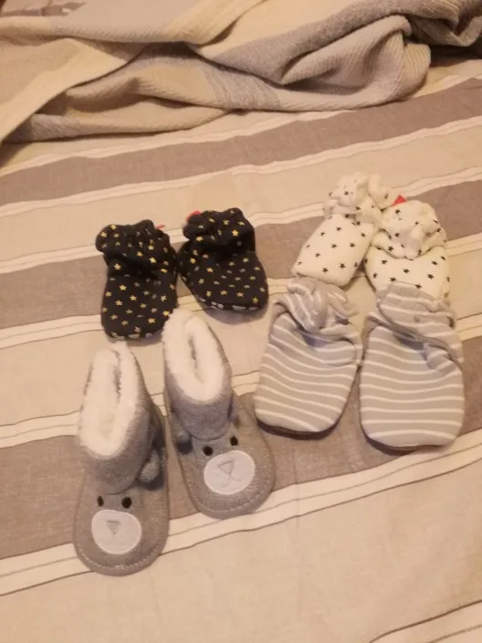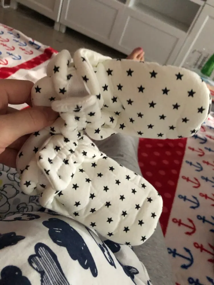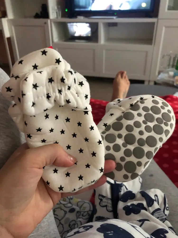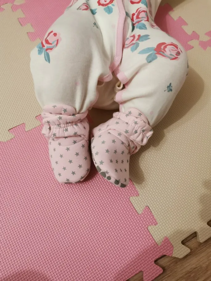 Купил для девочки 2 месяца. У него еще есть большие, но он хотел их, чтобы они не соскальзывали с ног, как носки с такими привидениями. Теперь намного теплее, и я более тихий.