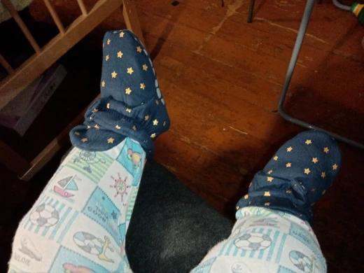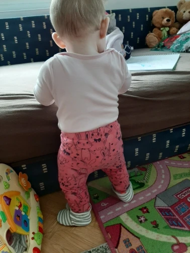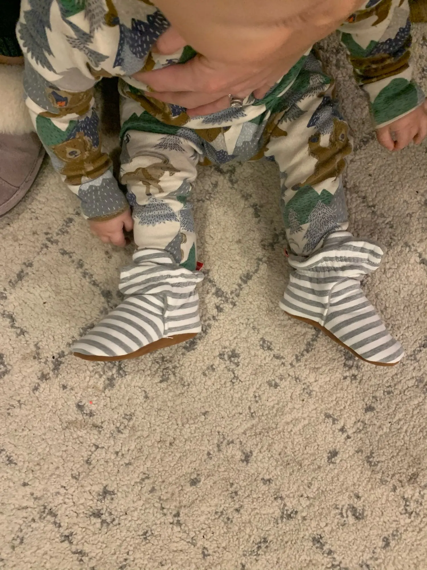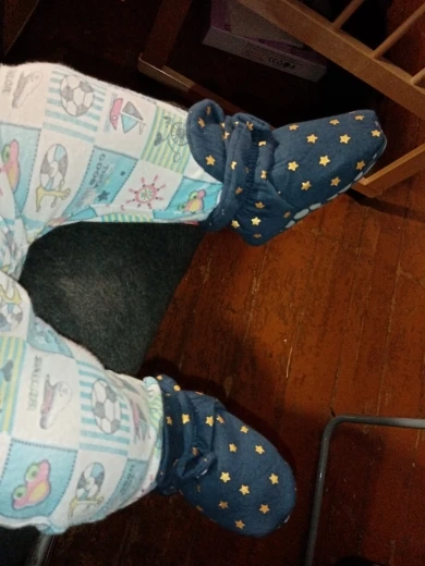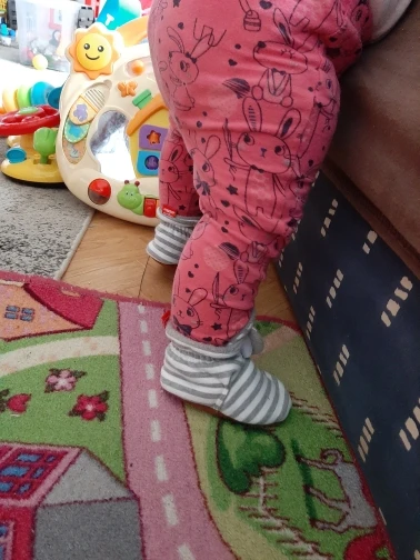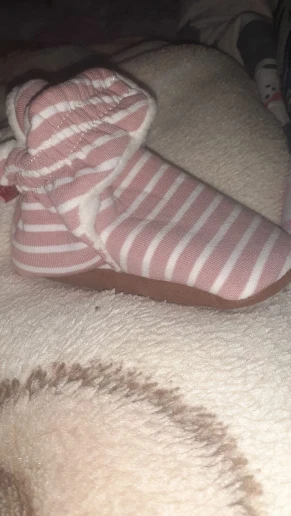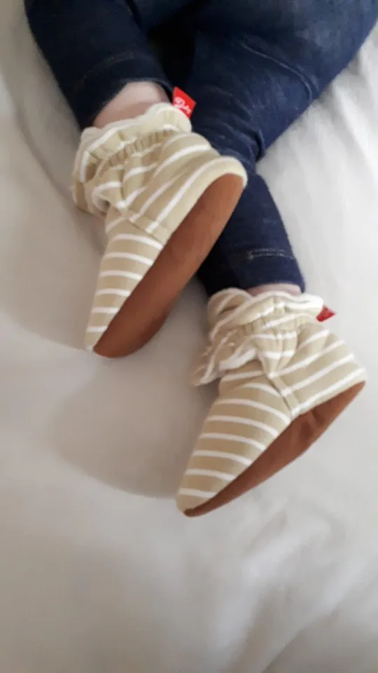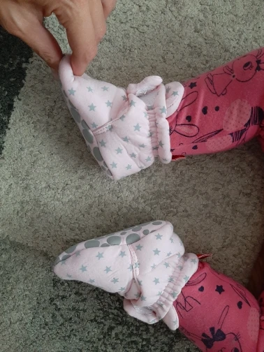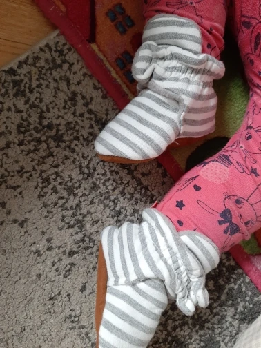 Они отличные! Вторая пара, которую я заказал. Моей девочке 7,5 МО, и я все еще заказал 0-6 МО, потому что я знаю, что они немного большие... И еще есть комната! Ранее я заказал розовый с серыми звездами. Теперь я заказал светло-серые полоски. В эти холодные дни, кажется, внутри очень теплый материал. Я одобряю! Счастливый.