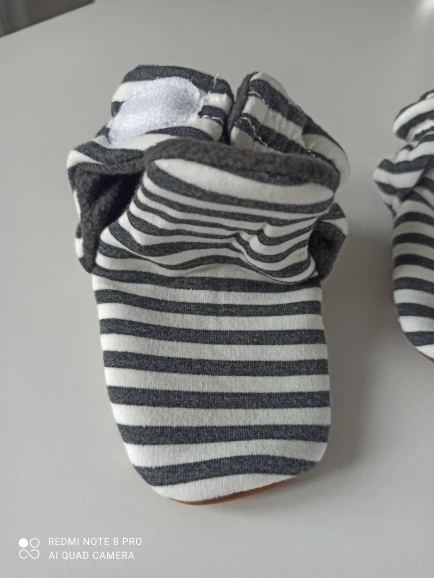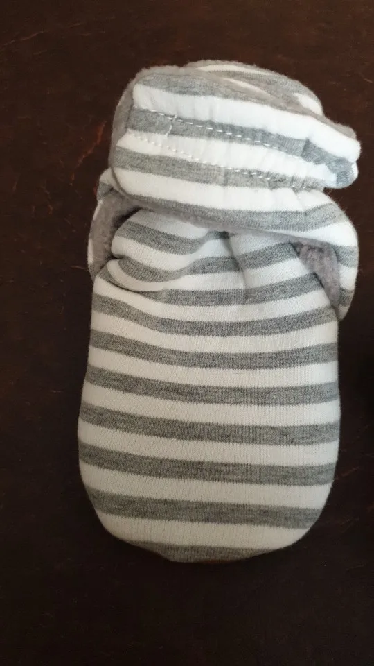 Тапотульки хорошие, длина в следу 12,9 см, ширина 6,5 см. Липучки дают возможность ШИРОКО распахнуть и с лёгкостью надевать пинетки. Вот только внутри шов, который потенциально может натирать (третье фото).