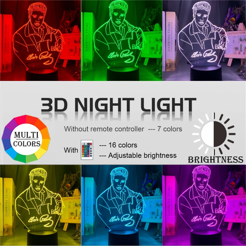 Фигурка Elvis Presley, Ночной светильник, светодиодный Ночной светильник, меняющий цвет, кошачий король Западного поп, лампа для спальни, поклонники, подарок