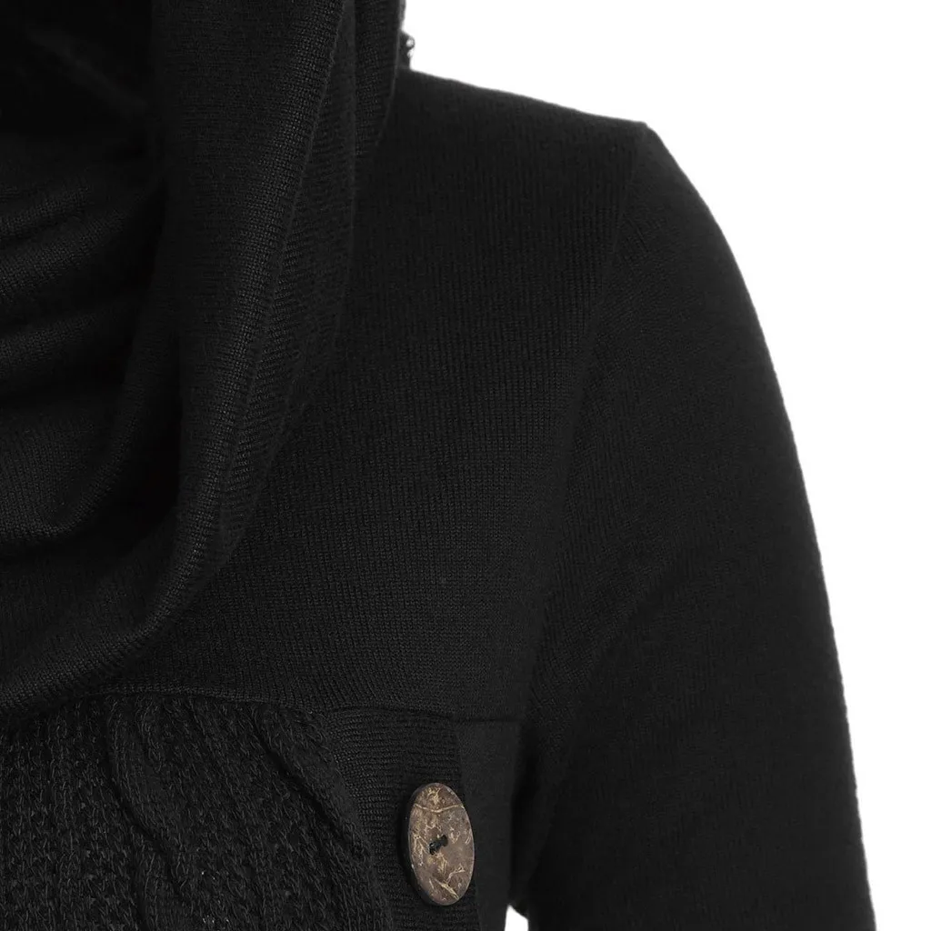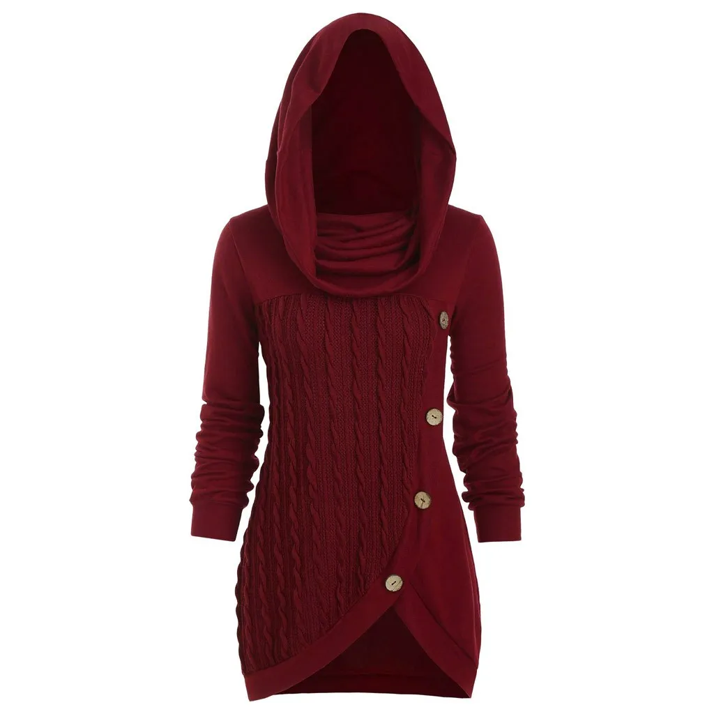 Женская однотонная пуговица большого размераВоротник-хомутНеобычный вязаный свитер с капюшоном
