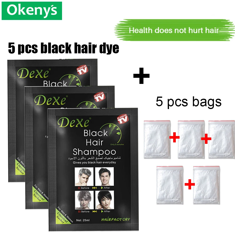 5 шт., 25 мл, Dexe, черный шампунь для волос, 5 минут, краска для волос в черную траву, натуральные, быстрее, черные волосы, восстановление, окрашивание, шампунь, лечение