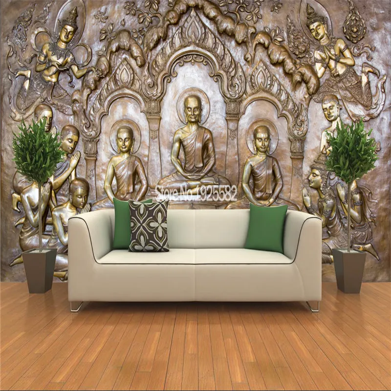 Пользовательские 3D тайские Стильные Металлические тисненые резные скульптуры Будды фото обои s для стен Таиланд домашний Декор 3D обои фрески
