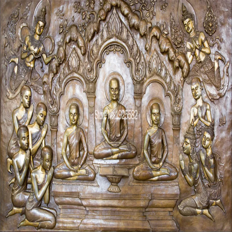 Тайская Металлическая резьба статуя Будды Настенная бумага для тайского стиля отеля ресторана коридора прохода декора стен 3D