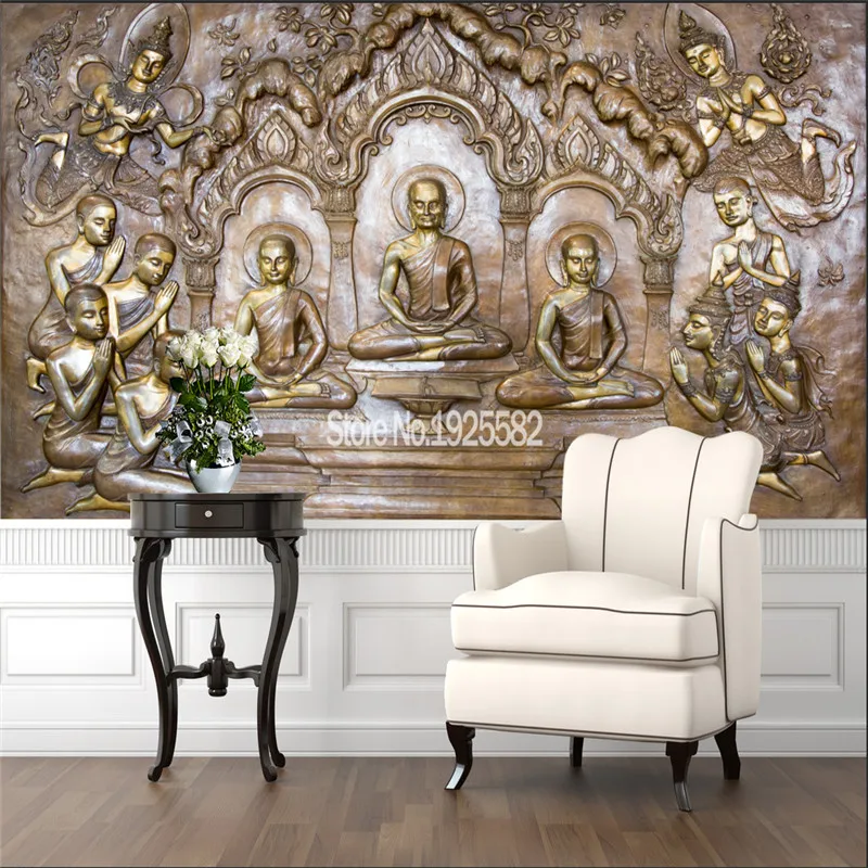 Thail стиль тисненая статуя Будды Настенная бумага для гостиной, ресторана, коридора, прохода, декора стен 3D
