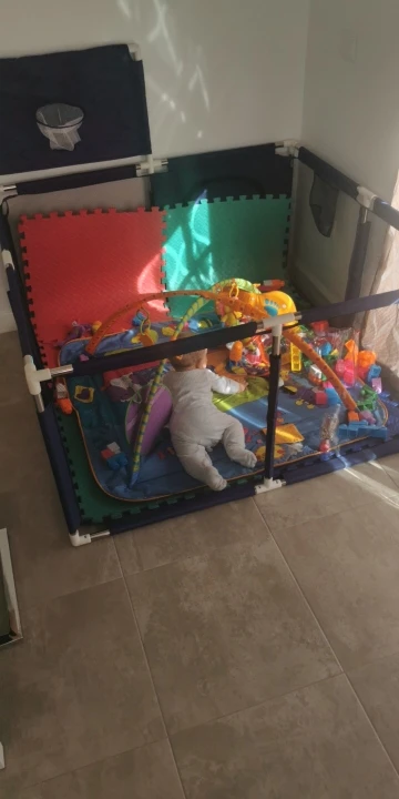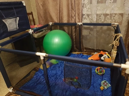 Хороший манеж, очень быстрая доставка Легко крепится, ребенок любит играть внутри, и я достаточно сильный, так что она не может снять забор. Я доволен покупкой