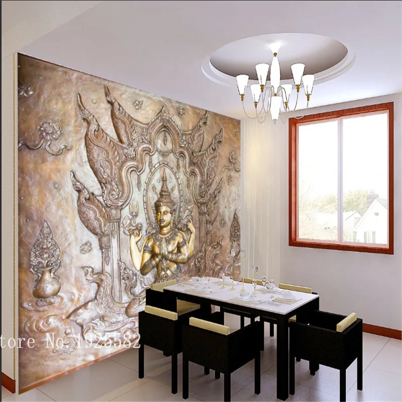 Thail стиль тисненая статуя Будды Настенная бумага для гостиной отеля ресторана коридора прохода декор для входа настенная бумага 3D