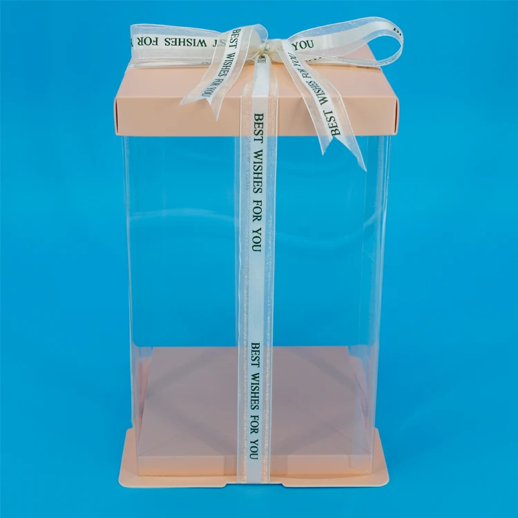 17х17х28 см прозрачная цветная основа Подарочная коробка для искусственного плюшевого мишки, Розовая прозрачная квадратная коробка для домашних животных для торта