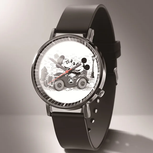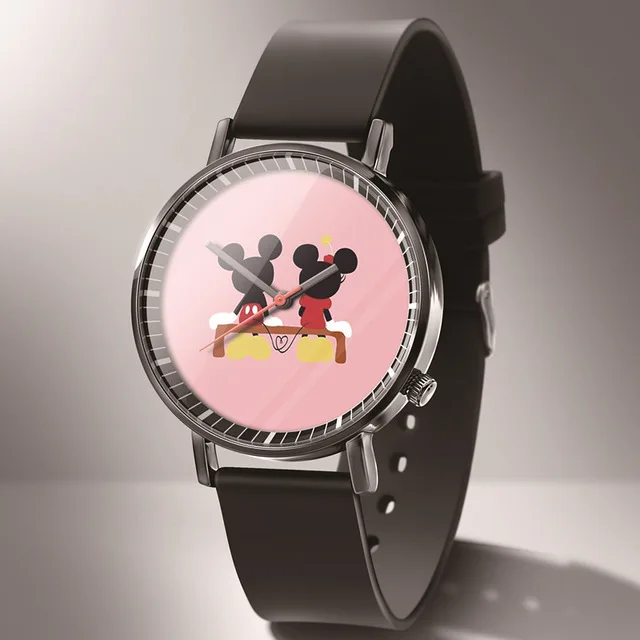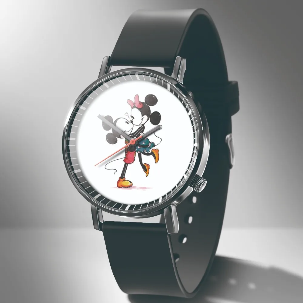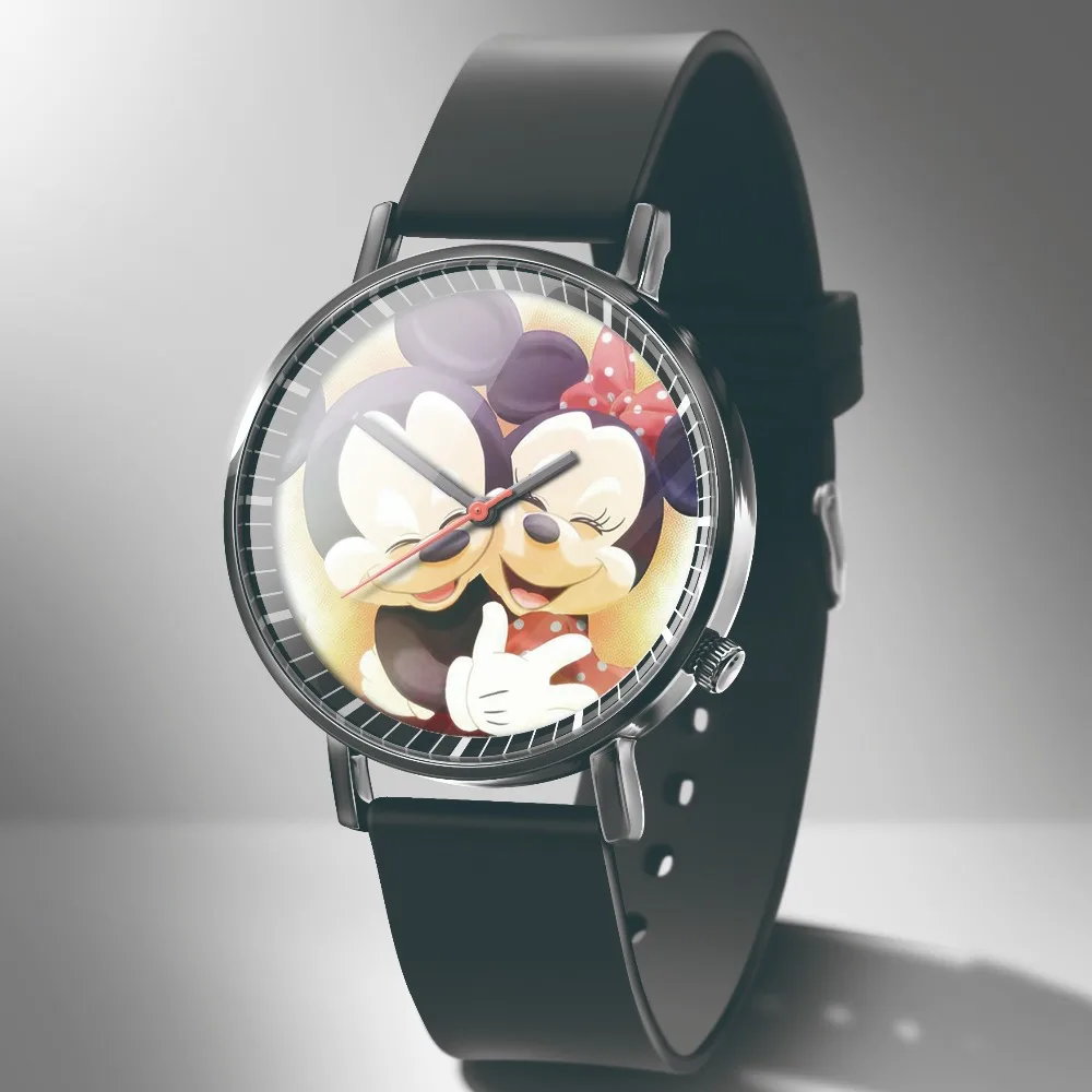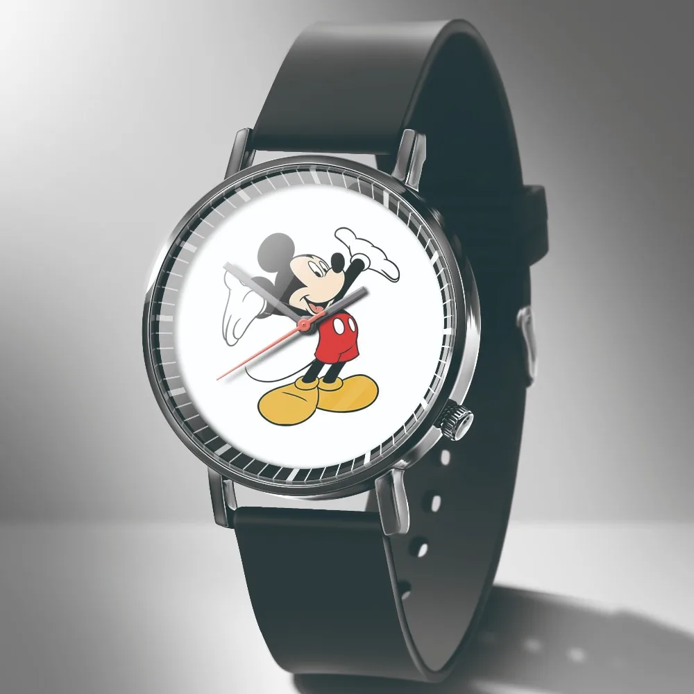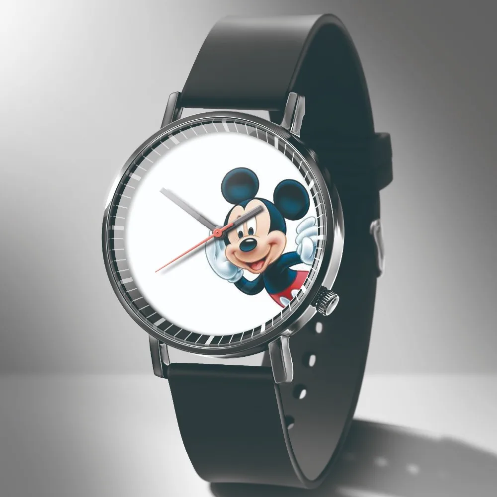 Часы женские кварцевые с изображением Микки Мауса, черные, кожаные,...