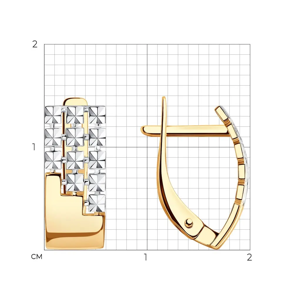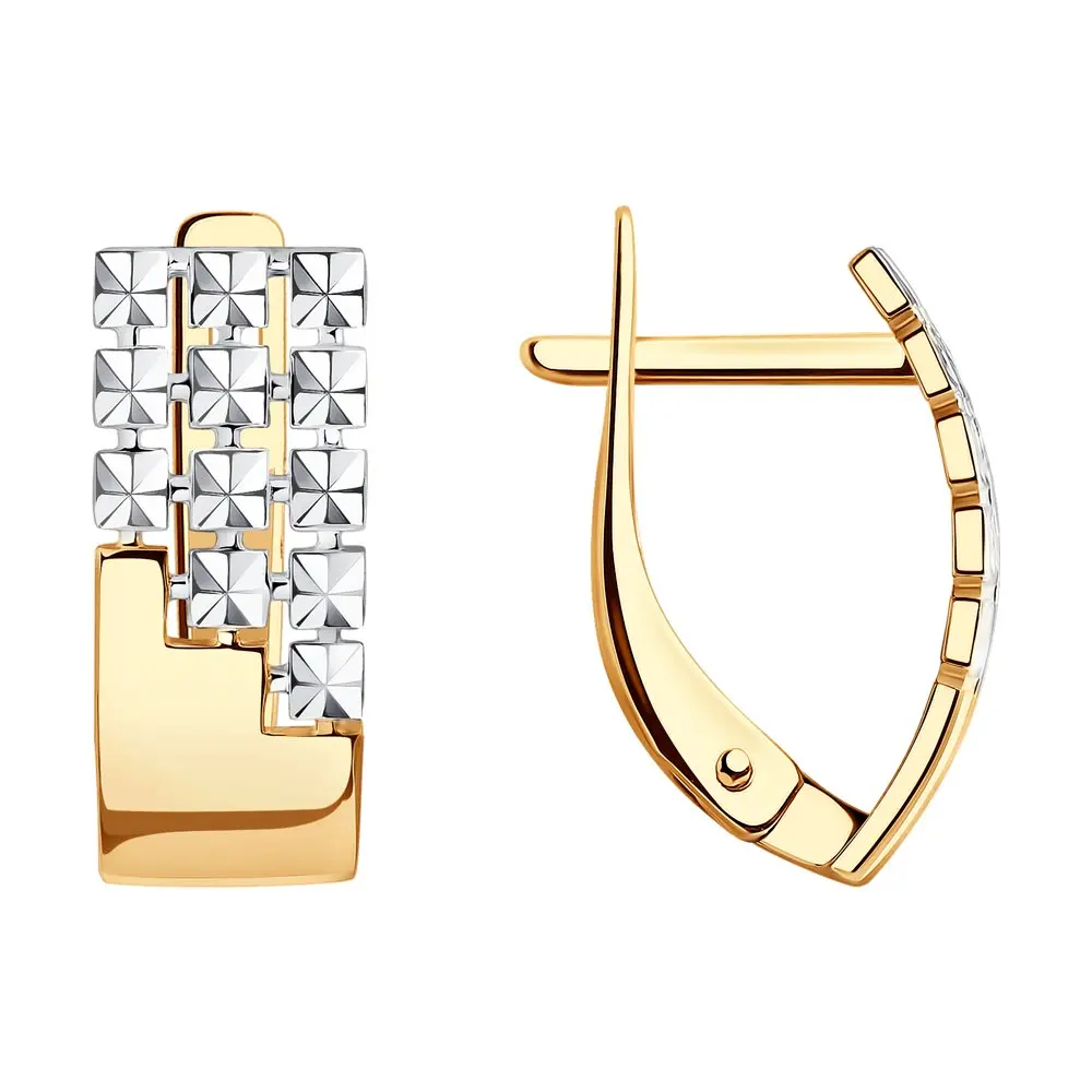 Серьги SOKOLOV из золота с алмазной граньюСерьги из золота с алмазной гранью выполнены в трендовом сочетании двух оттенков металла. Форма состоит из деталей, гармонично соединённых между собой, как кусочки пазла. Алмазная грань светлого металла создаёт особый блеск, напоминающий мерцание драгоценных вставок. Переосмысленная классика для активной и современной жительницы мегаполиса.