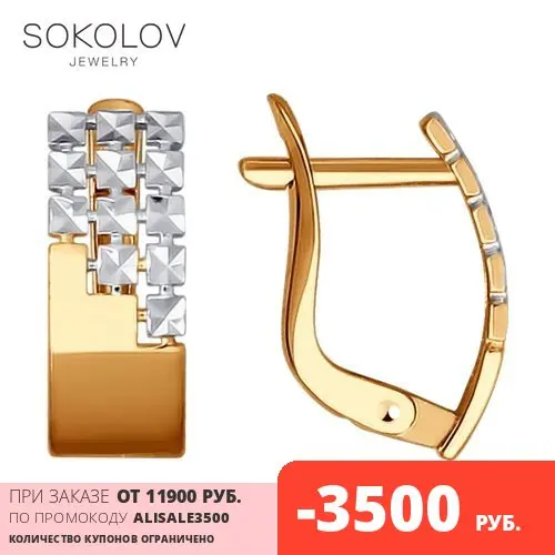 Серьги SOKOLOV из золота с алмазной гранью, Золото, 585, Женские, Серьги 2022 тренд, Оригинальная продукция
