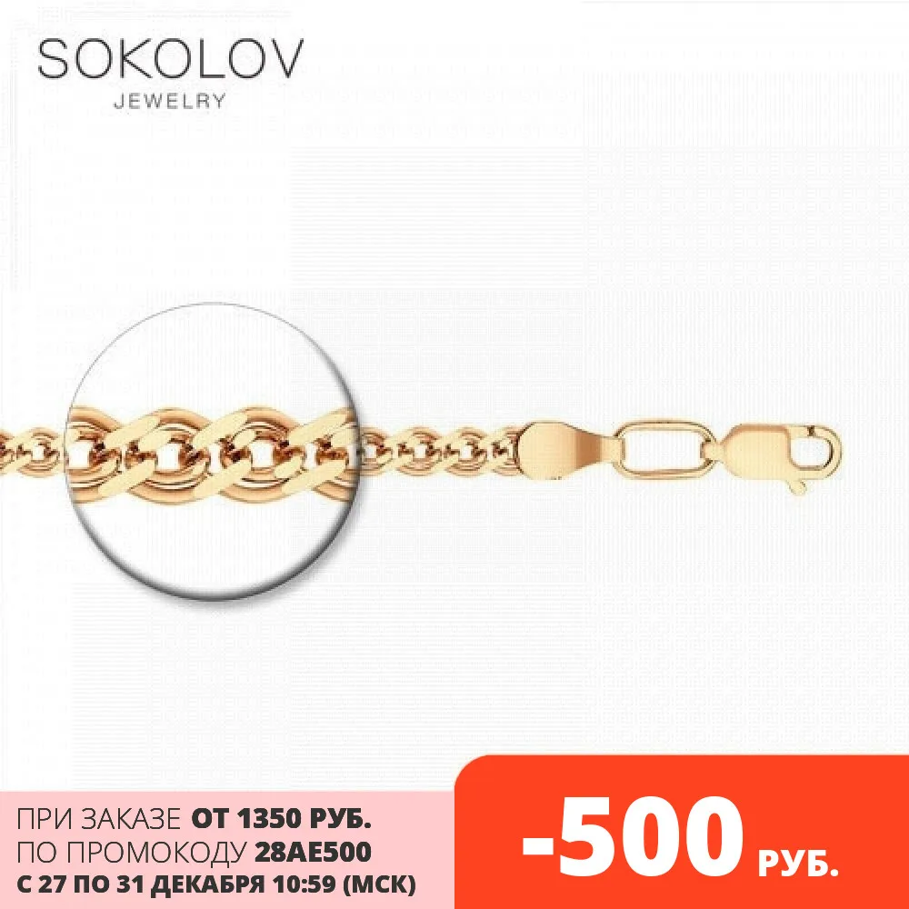 Цепь SOKOLOV из золочёного серебра, Серебро, 925, Цепь на шею, Оригинальная продукция