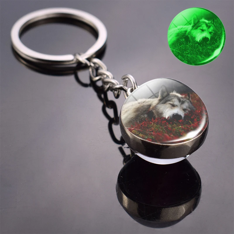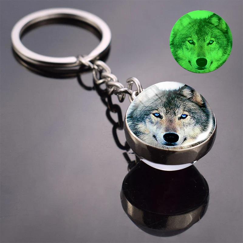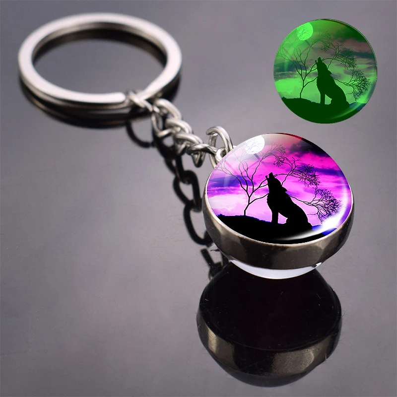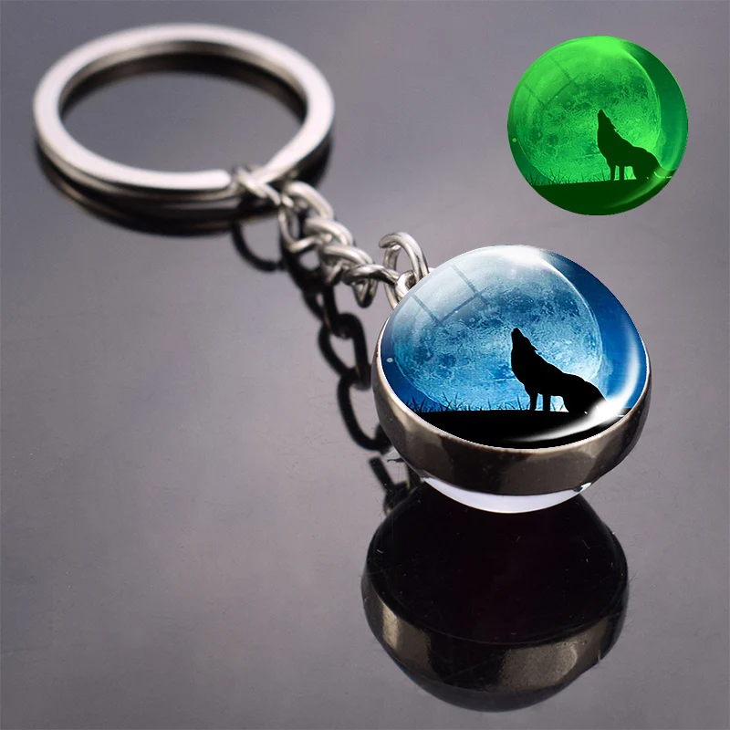 Светится в темноте волк брелок Воющий волк и брелок с лунным камнем двухсторонний стеклянный шар брелок Подвеска в виде волчьей головы брелок