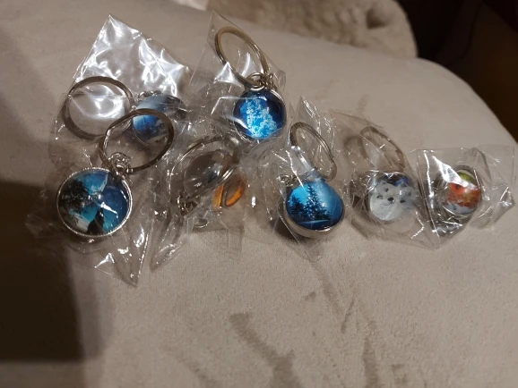 Очень хорошие брелки. Рисунки яркие, четкие, кольца крепкие. Рекомендую