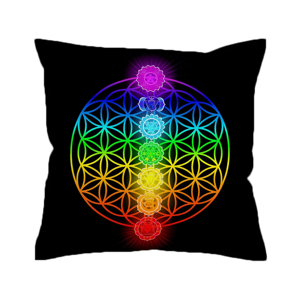 Наволочка с цветным цветком жизни, наволочка с цветным цветком жизни, разноцветный домашний декор