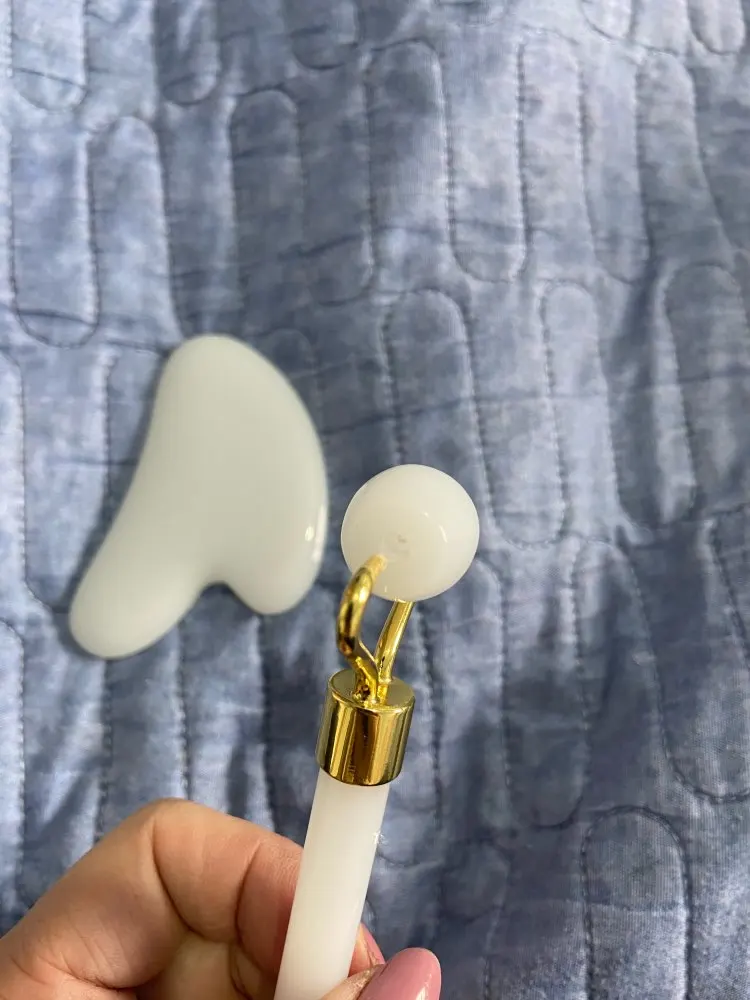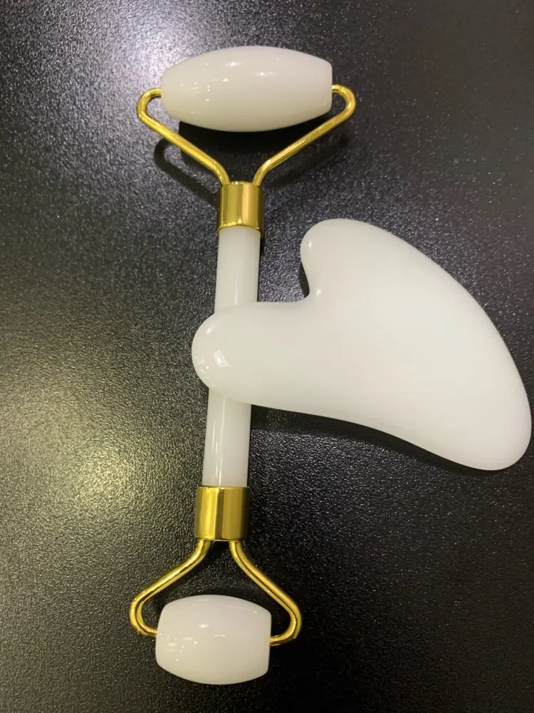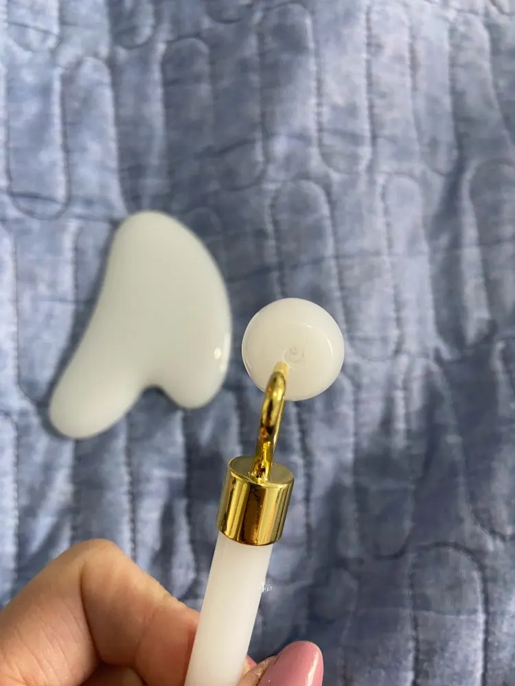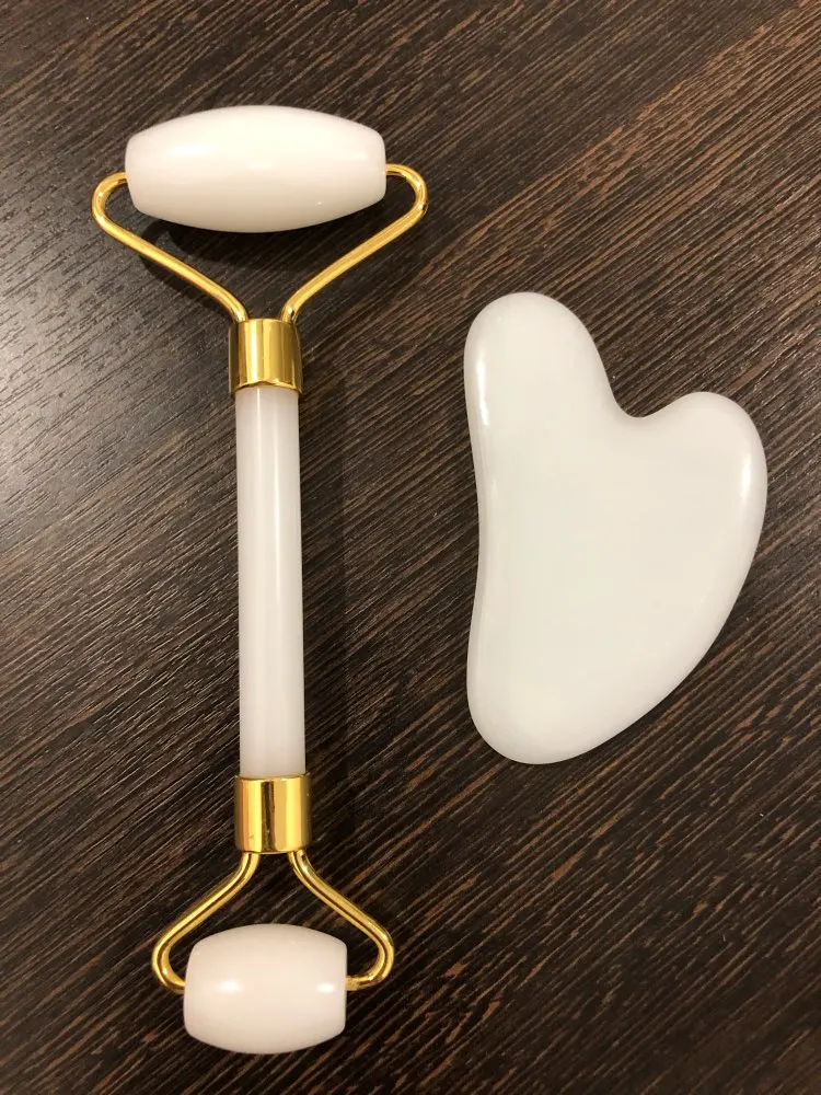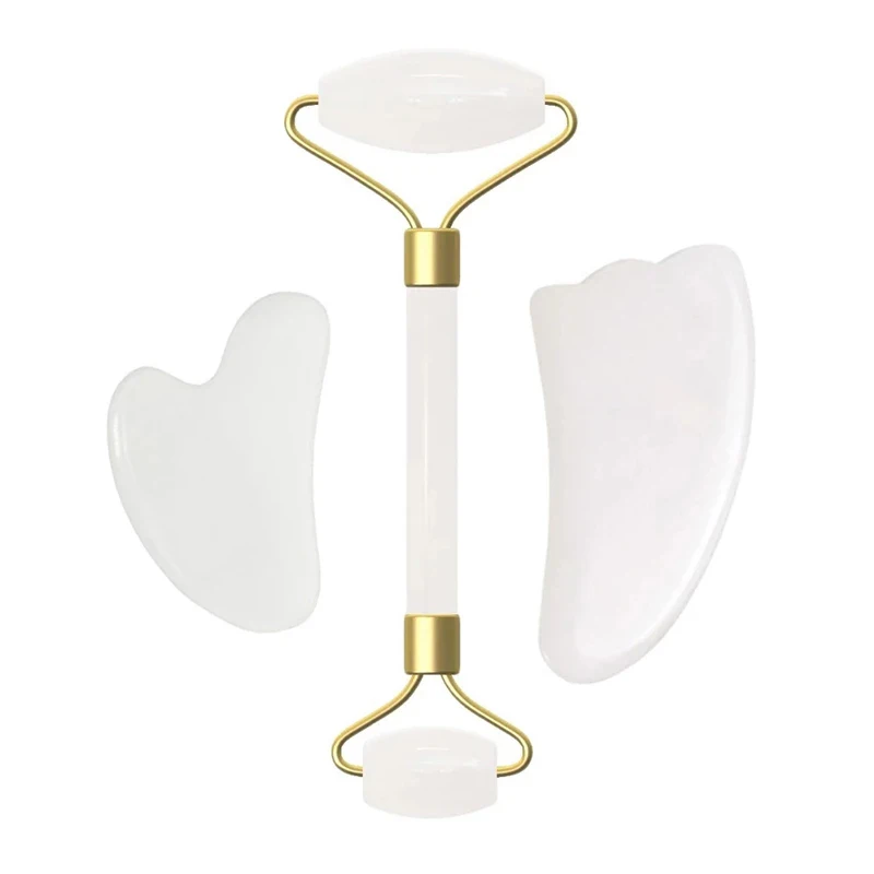 Натуральный белый нефритовый ролик Guasha скребок для доски, набор из белого кварца для лица, Инструмент Для Массажа Гуаша Sha, каменный массажер для лица