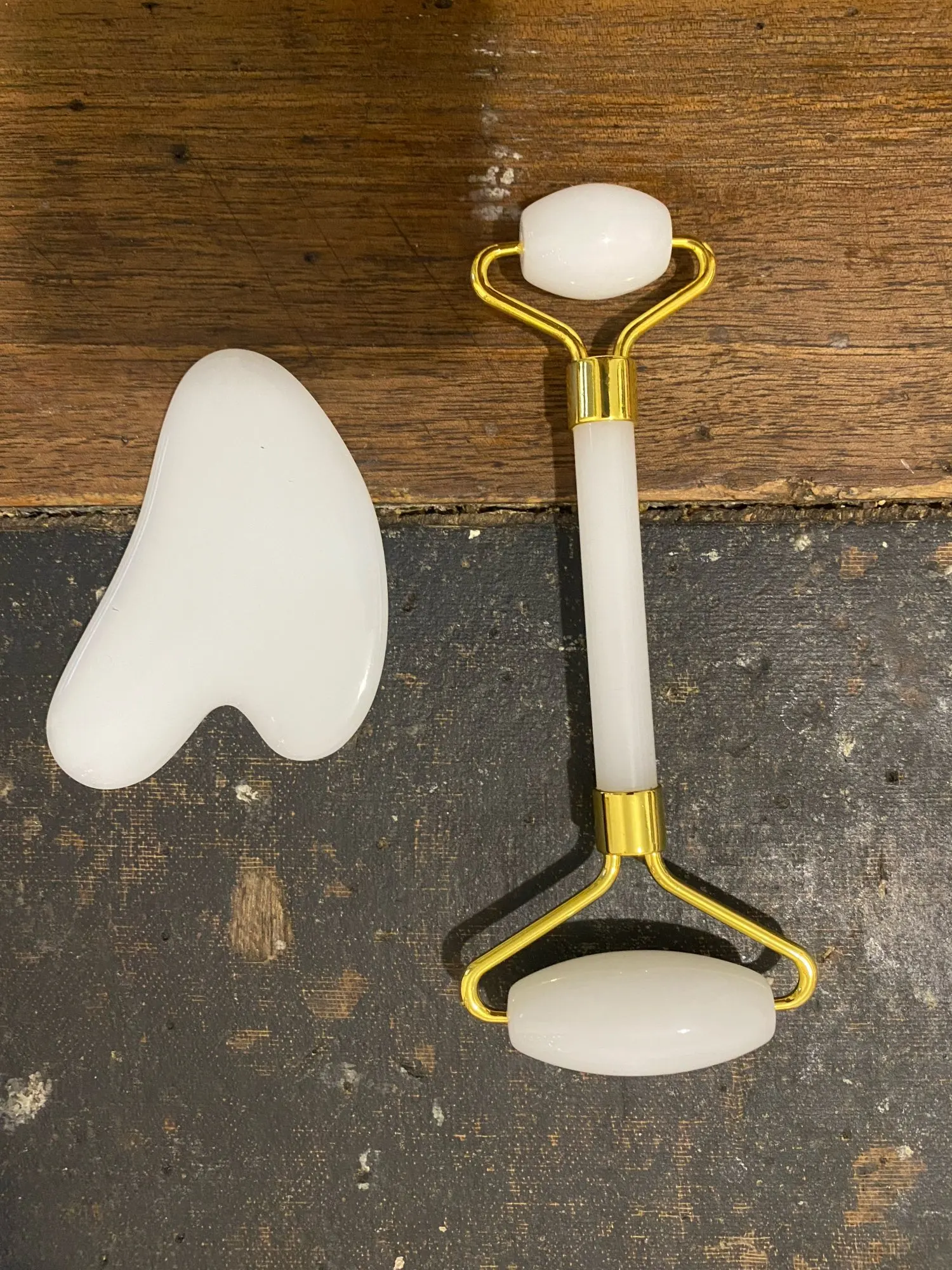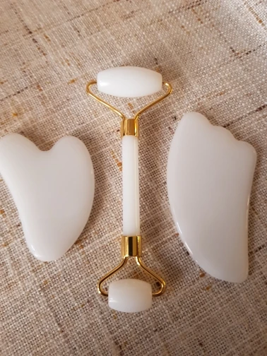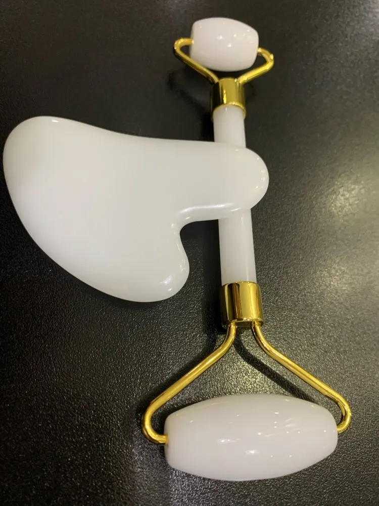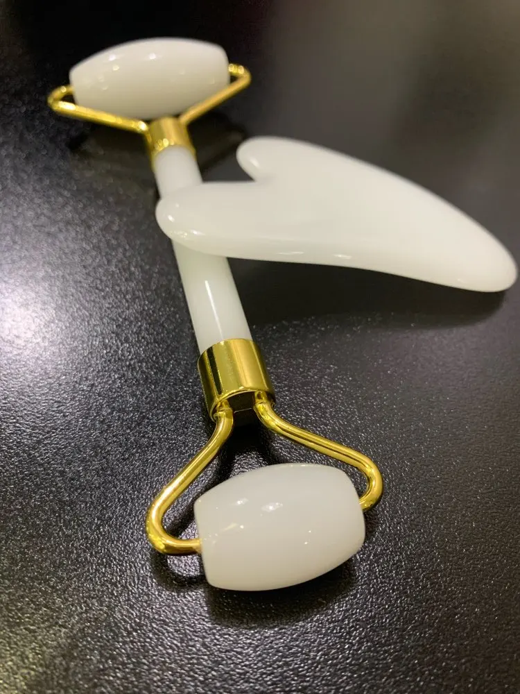 Натуральный белый нефритовый ролик Guasha скребок для доски, набор из белого кварца для лица, Инструмент Для Массажа Гуаша Sha, каменный массажер для лица