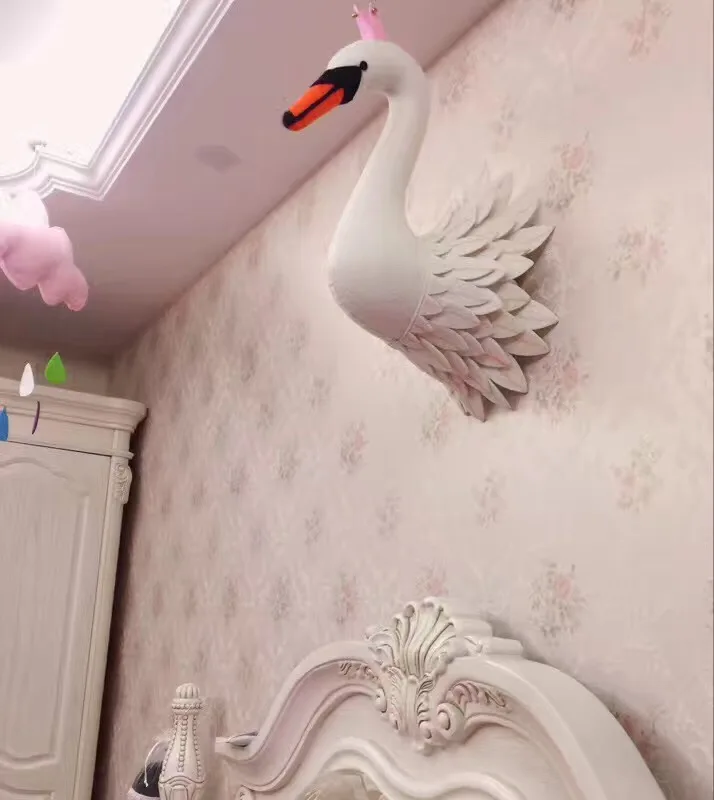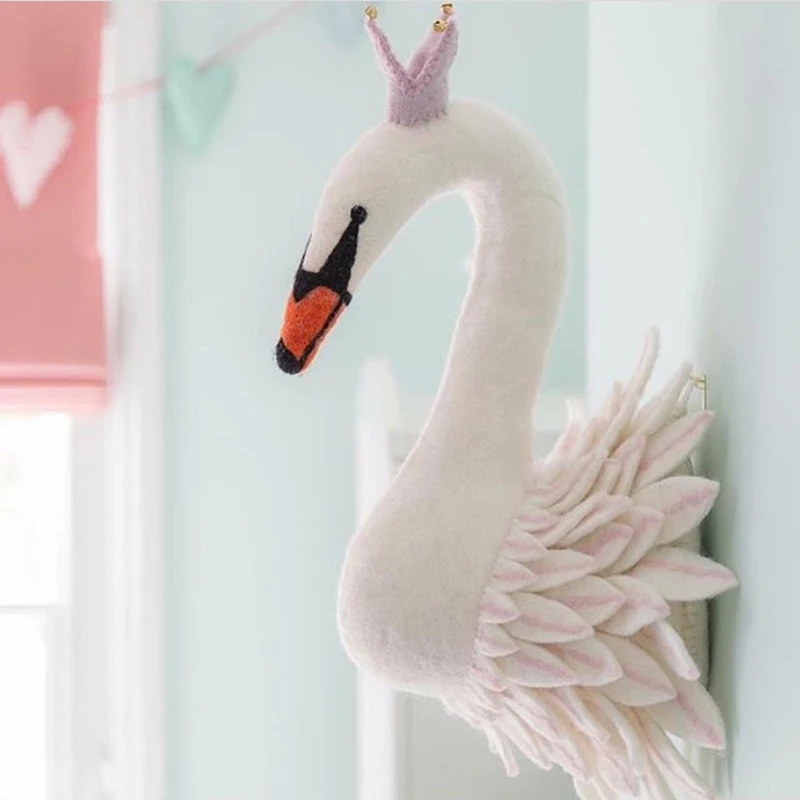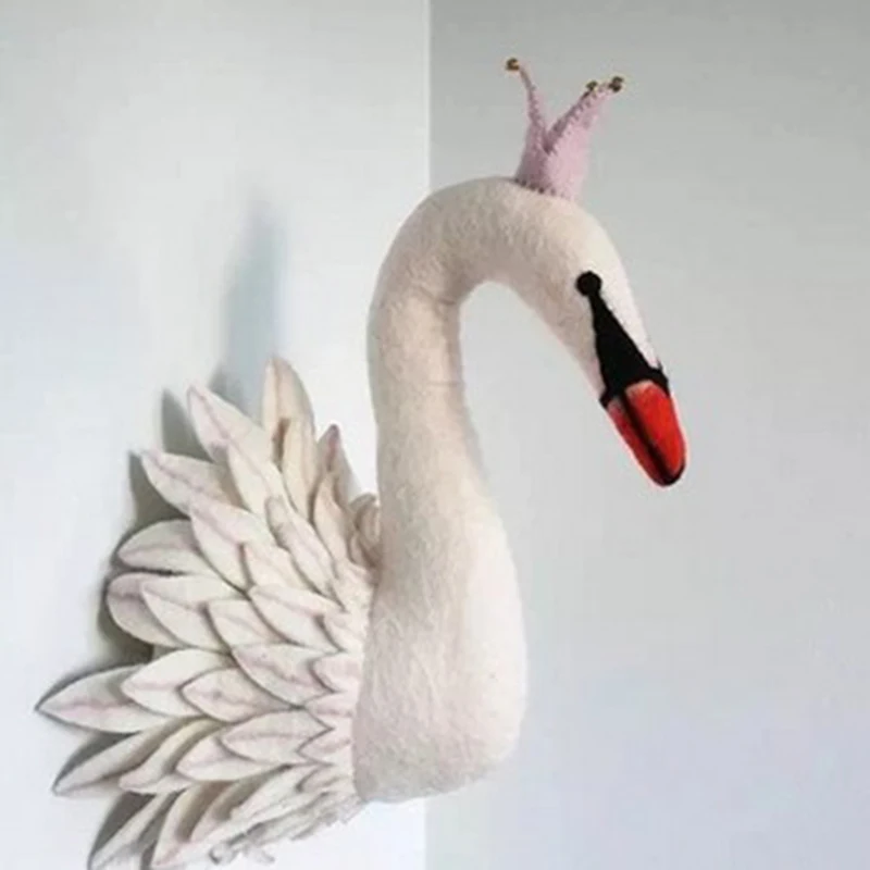 Декор для комнаты девочки, плюшевое животное, голова лебедя, настен...
