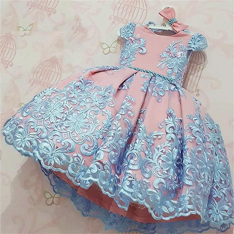 Кружевное бальное платье для девочек, с цветочной вышивкой