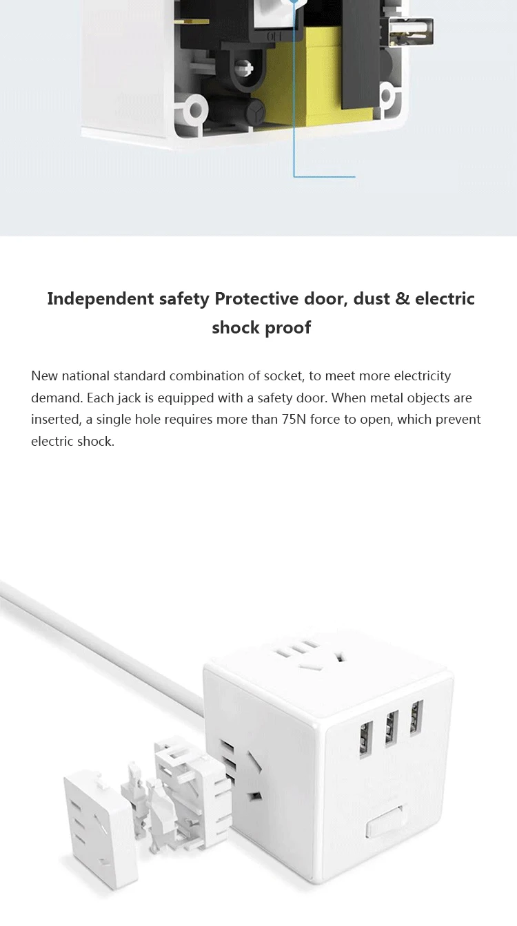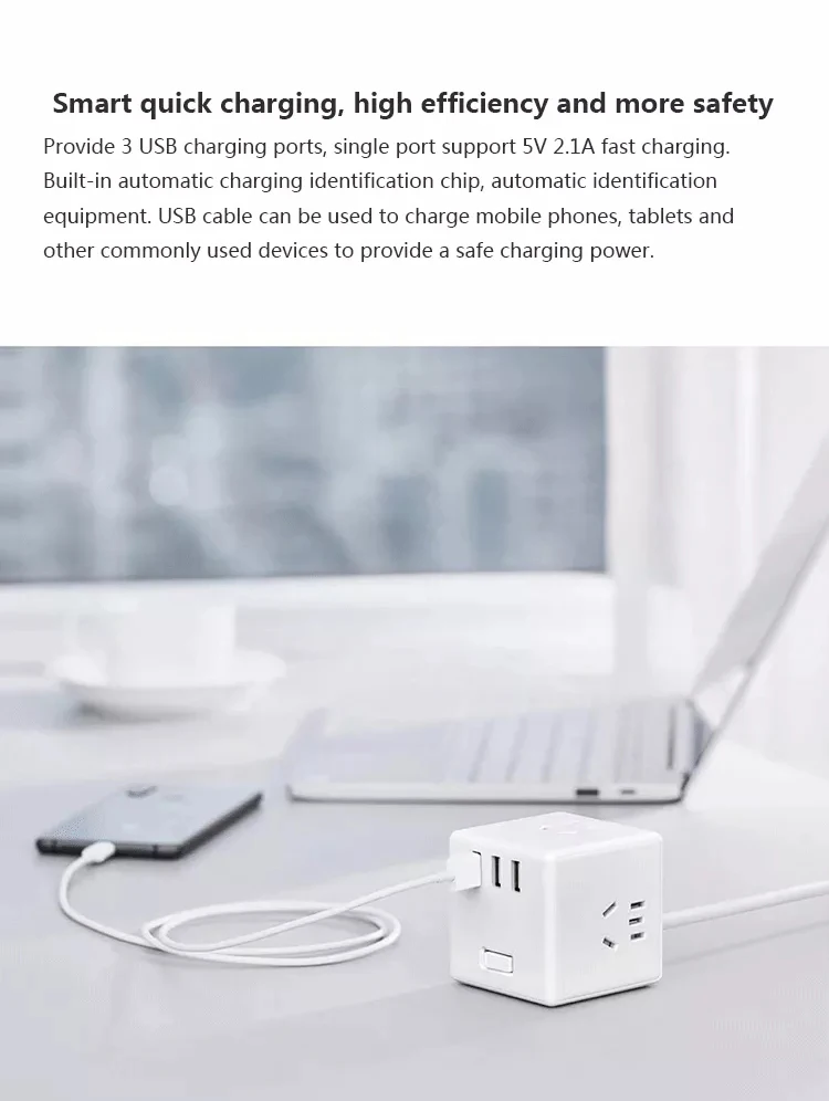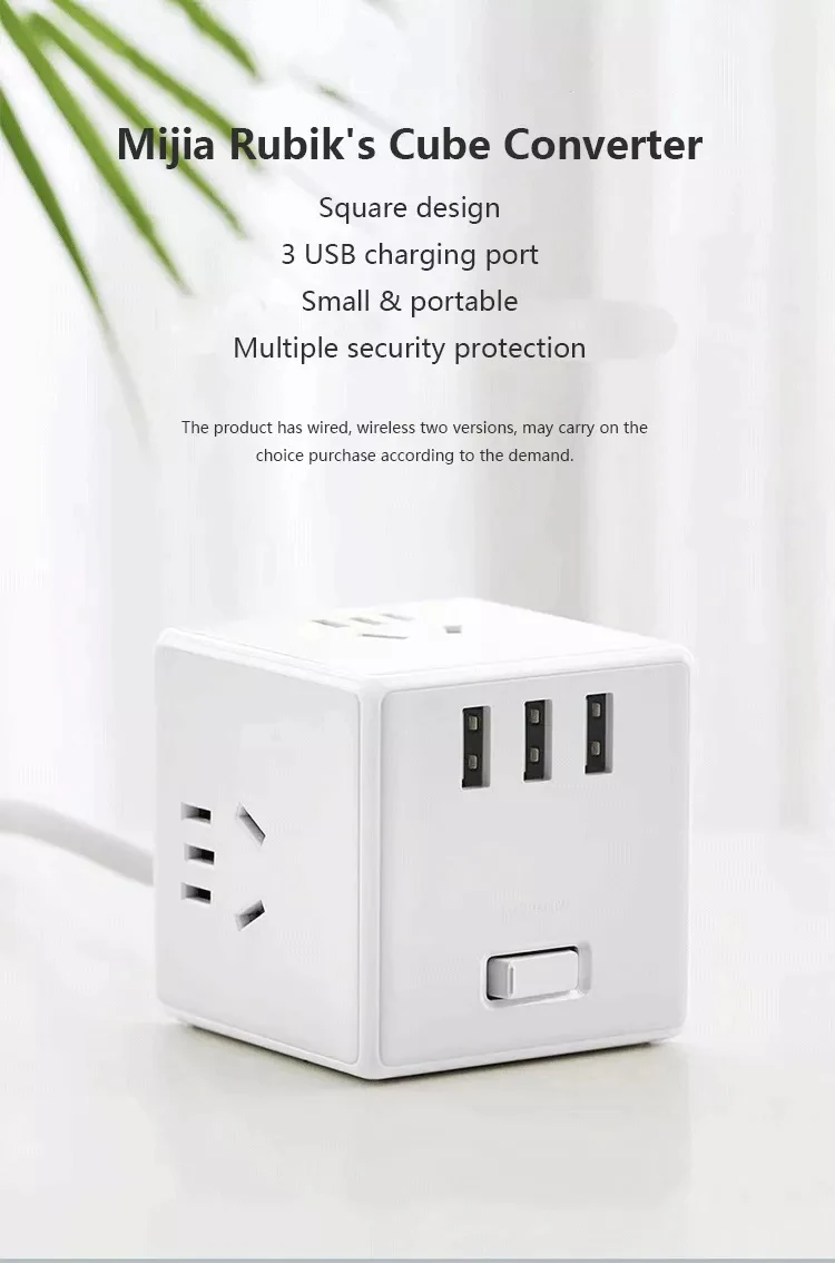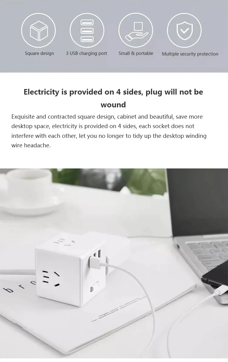 Экономия пространстваМинимальный размер и портативныйДизайн квадратного Куба3 usb-порта для зарядкиМножественная защита безопасностиКонвертер Mijia Magic Cube