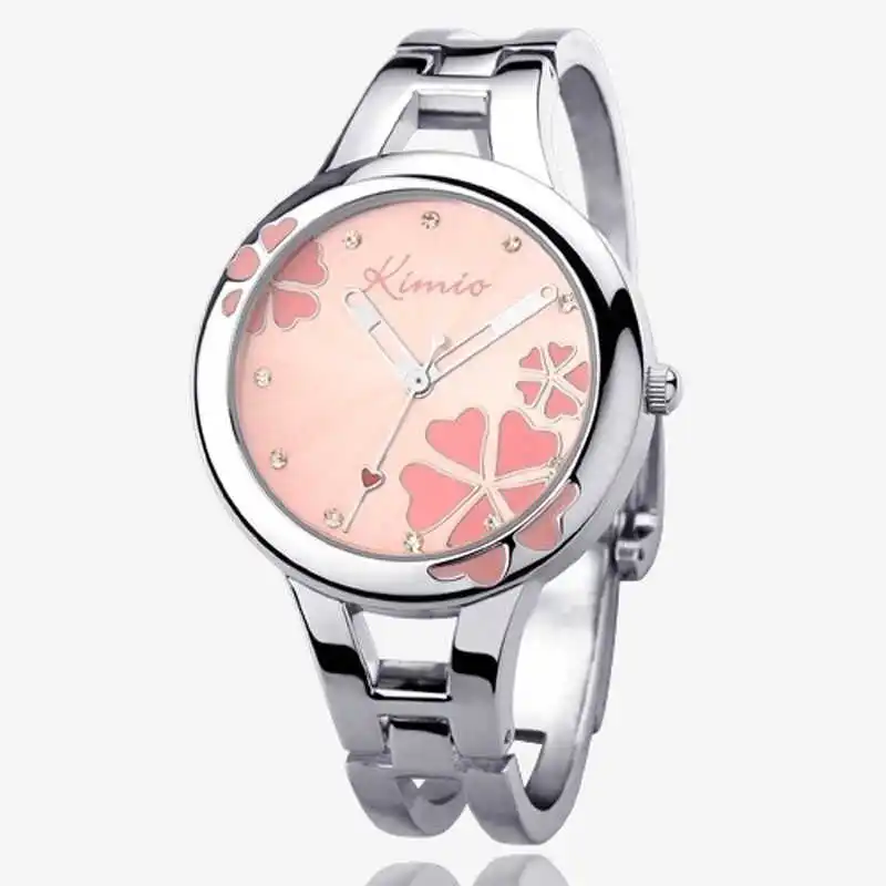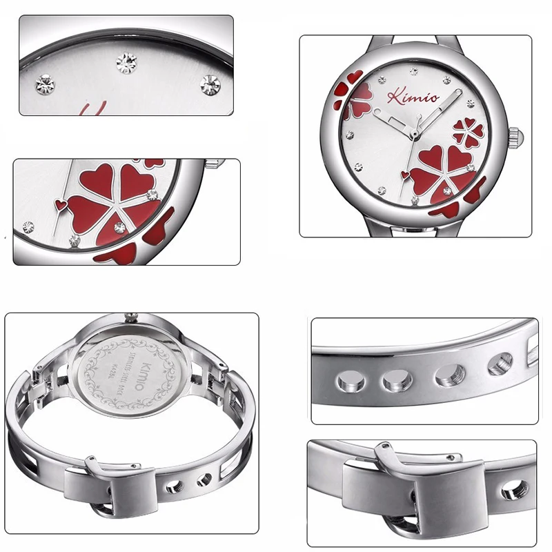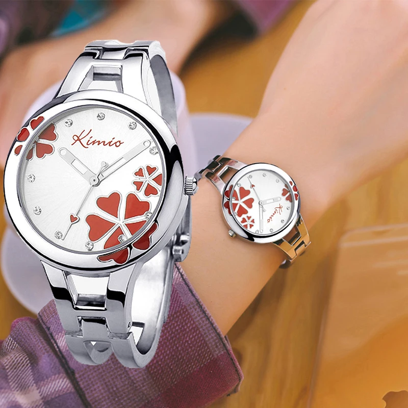Kimio Брендовые женские наручные часы с браслетом, женские кварцевые часы с Клевер нержавеющая сталь кристаллами, женские наручные часы для женщин