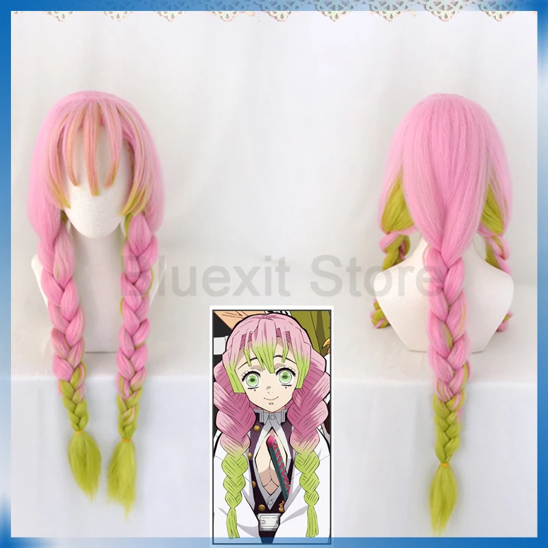 Kimetsu no Yaiba Kanroji Mitsuri парик демон Slayer длинные толстые косички Розовый Зеленый Хэллоуин косплей плетеные волосы для женщин ролевые игры
