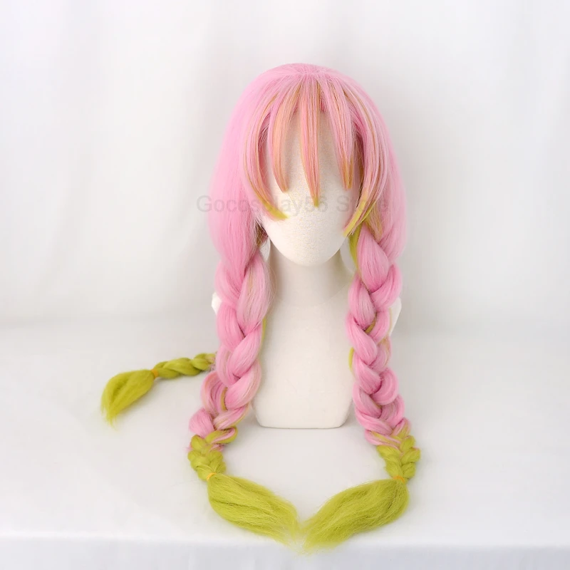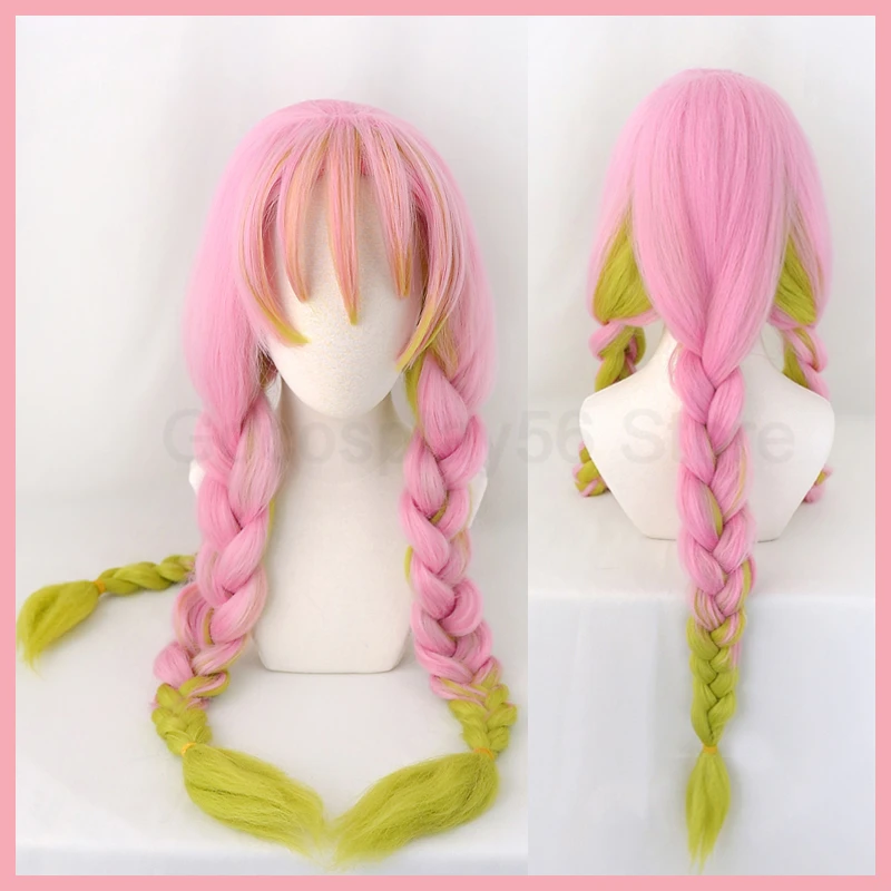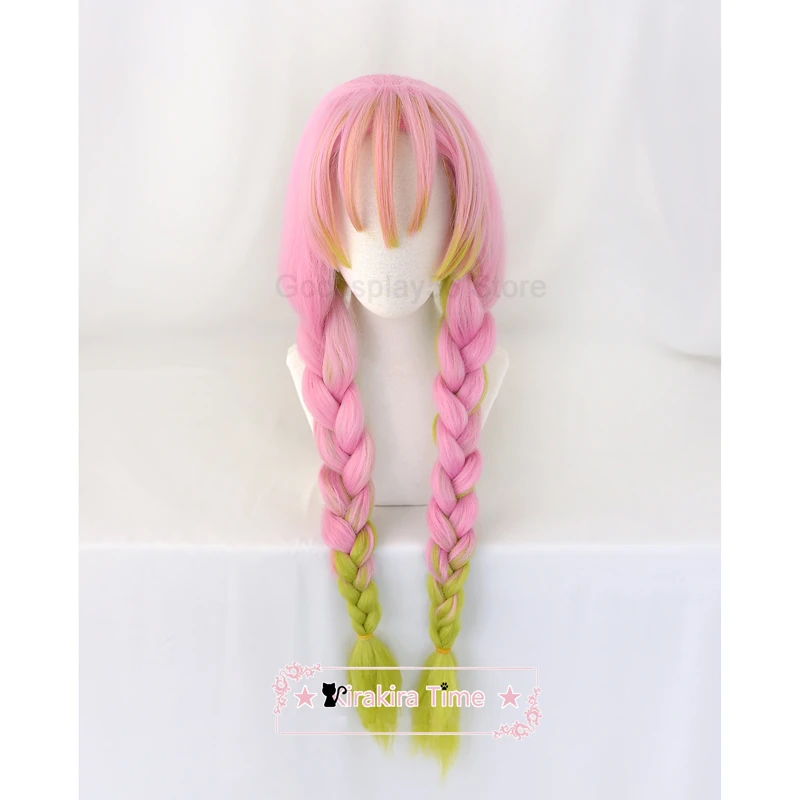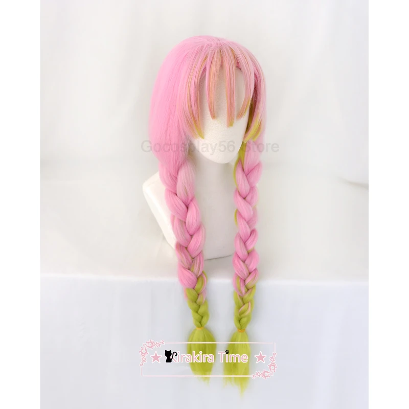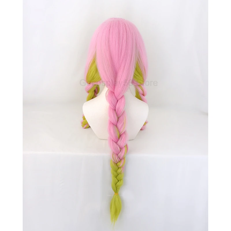 Kanroji Mitsuri косплей густые косы конский хвост градиентные розовые зеленые волосы Хэллоуин Взрослые
