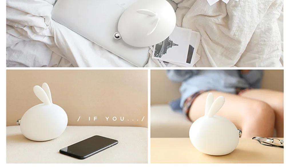 СВЕТОДИОДНЫЙ ночник в виде кролика, цветной мультяшный силиконовый светильник с сенсорным датчиком и регулируемой яркостью, с USB-зарядкой, подарок для детей и малышей