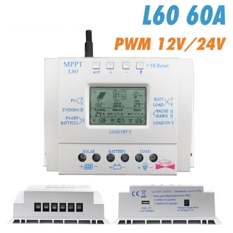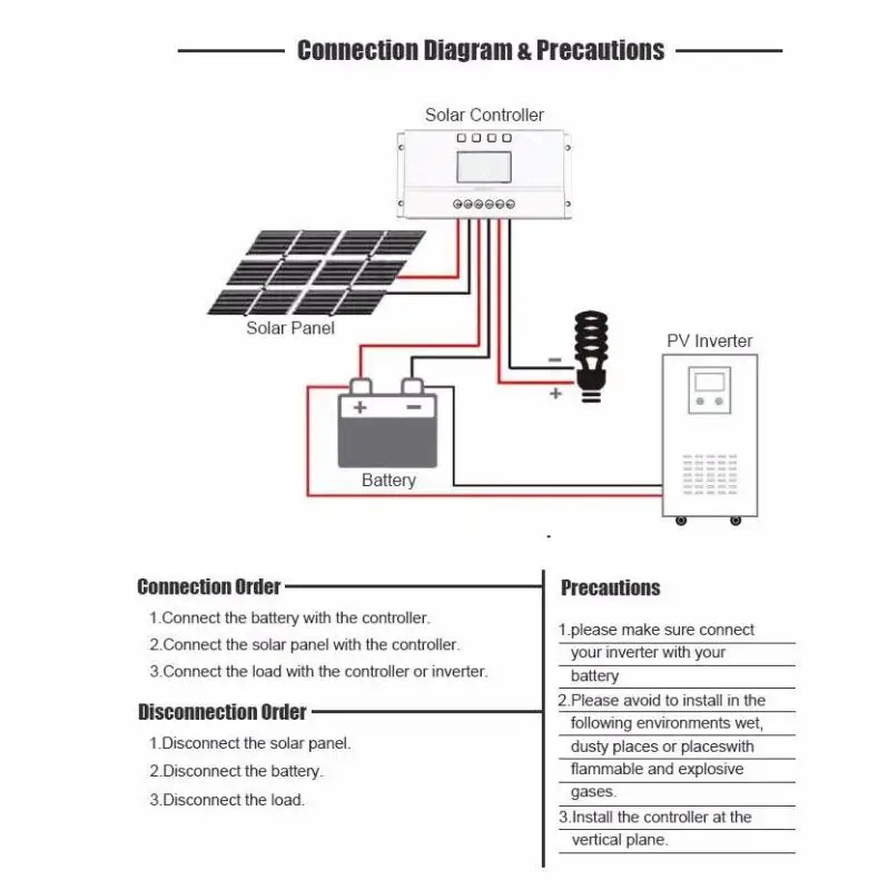 Максимальное напряжение открытой цепи солнечных панелей: 18V ~ 24V (система 12V) 36V ~ 48V (система 24V)
