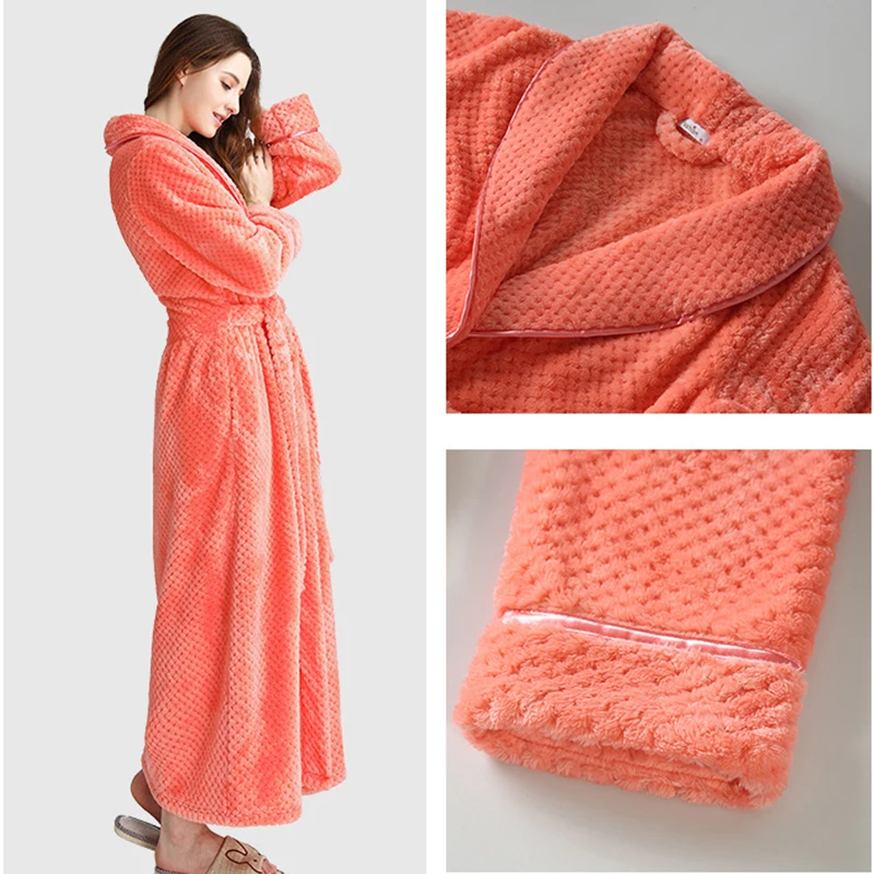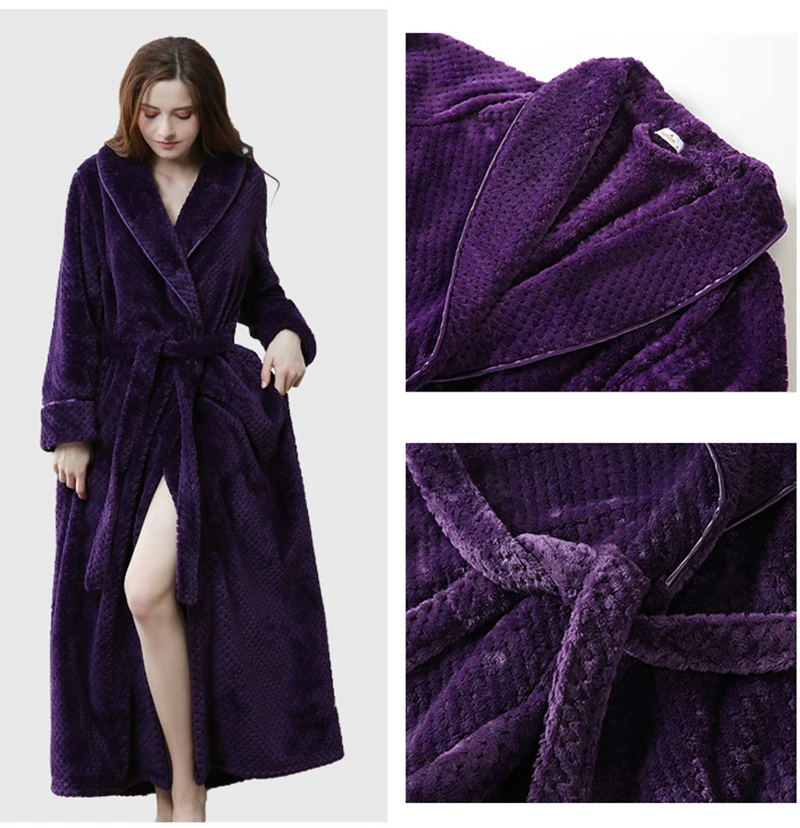 Зимний Длинный мягкий фланелевый Халат-кимоно, теплый банный халат из кораллового флиса, ночные меховые халаты, халат, мужская и женская одежда для сна