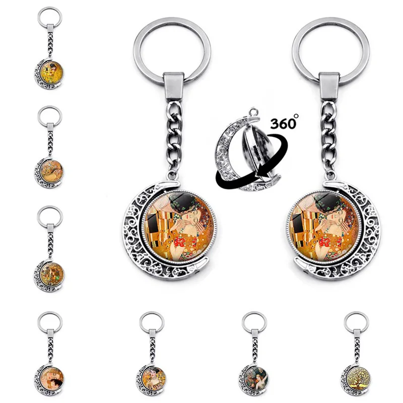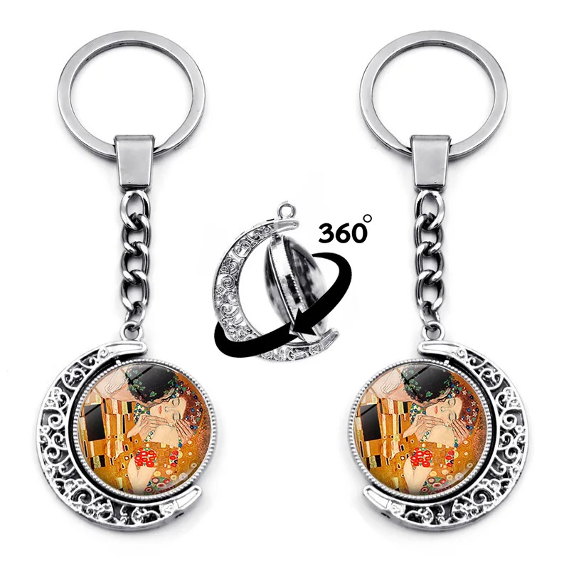 Брелок Gustav Klimt поцелуй вращение на 360 градусов художественный двухсторонний кулон в виде полумесяца креативный брелок