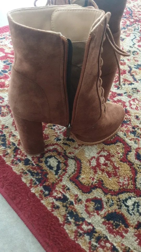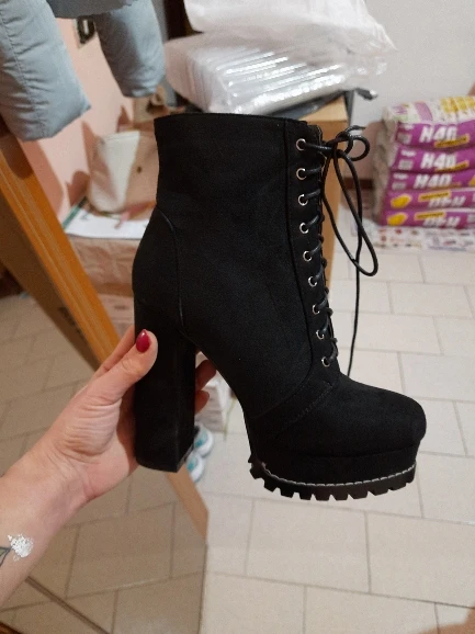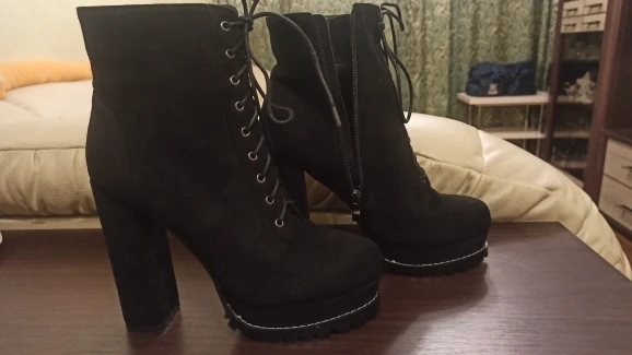 Симпатичные ботильоны. Выполнены неплохо, торчащего клея нет, запаха нет, каблук высокий, устойчивый. К сожалению на момент заказа отзывов не было. Из недостатков: размерная сетка неверная. По сетке предоставленной при выборе цвета и размера на длину стопы 24.5см выпадает размер 8. В большинстве случаев на АлиЭкспресс этот размер мне подходит. В данном случае этот размер оказался мне очень велик, по факту оказалось, что длина стельки 26см. надо было брать максимум 7 размер, а возможно даже и 6.5., но у меня узкая нога, эти ботильоны подойдут и на широкую. Очень обидно. По спору арбитраж вернул часть стоимости, хотя продавец утверждает, что из-за высоты каблука я неправильно измеряю длину, хотя от высоты каблука длина стопы явно не изменится. Выбирайте размер осторожнее, пишите продавцу, все таки цена за них не маленькая.