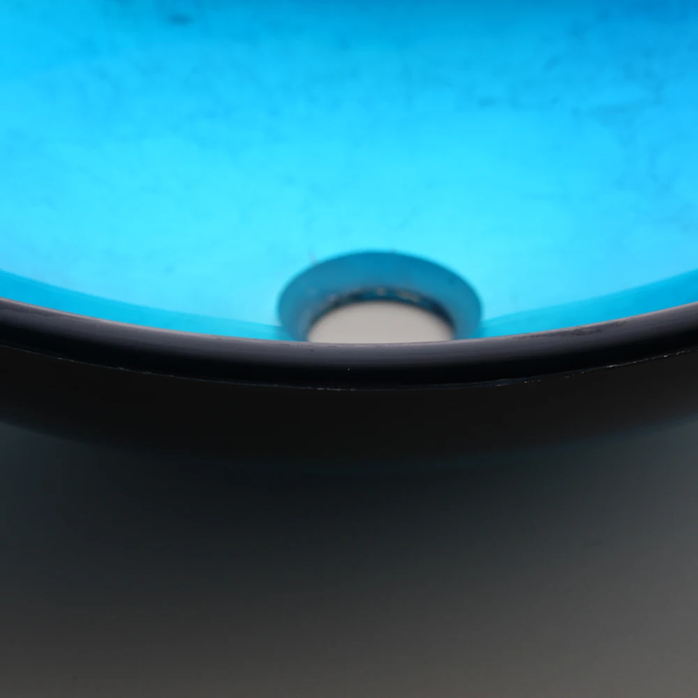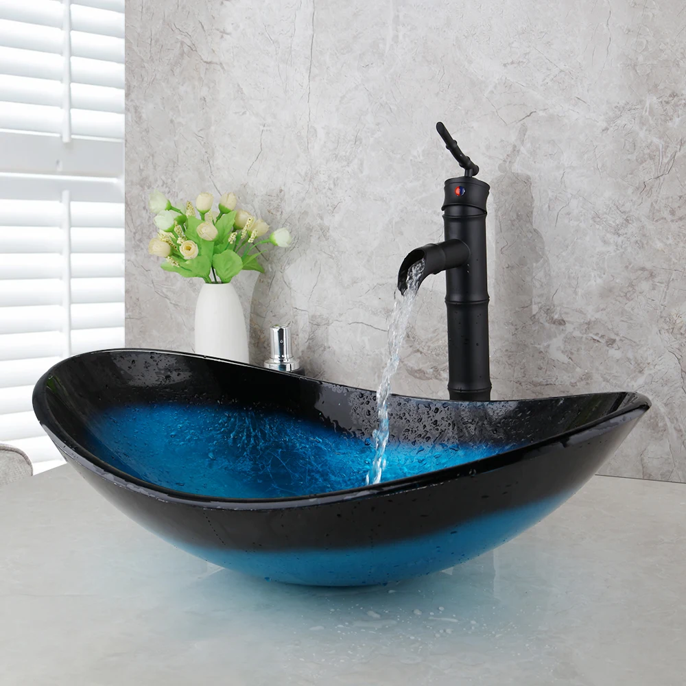 JIENI синий закаленное стекло раковина кран сосуд слив комбо набор ...