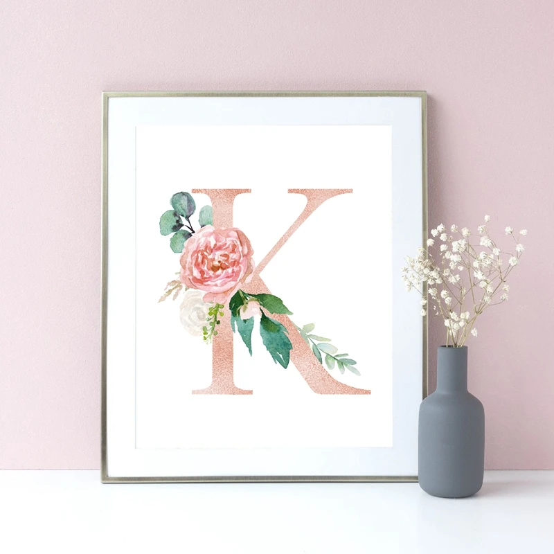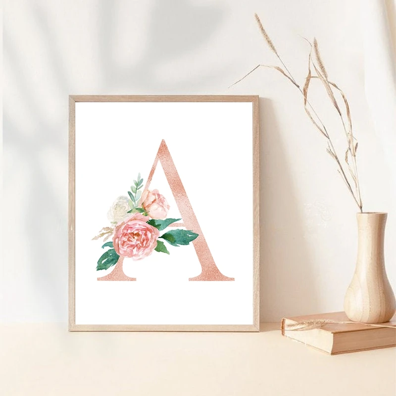 Девочка печатает Персонализированные девушки имя плакат для детской печати розовые цветы стены искусства холст картины для девушки комнаты