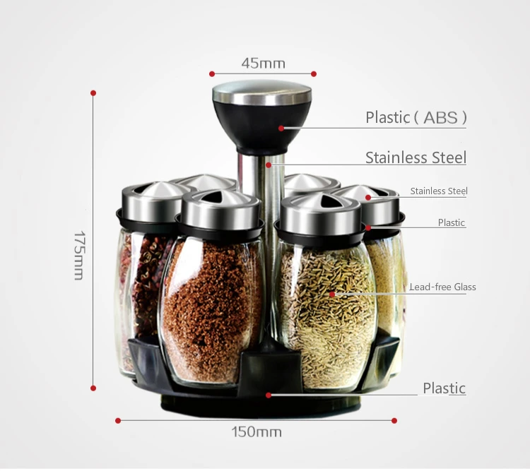 Особенность-В комплект входят 8-Стеклянные Бутылочки для специй с герметичной крышки измеряется при температуре не выше 3,75 "x 1,7", и 1 вращающийся организации caddy измеряется при температуре не выше 6,3 "x 4,7". Материал: без BPA пластик и стекло, ручка из нержавеющей стали. Прозрачная стеклянная банка позволяет легко видеть специи внутри. Сборка не требуется. Легко чистить, просто протрите влажной тканью.