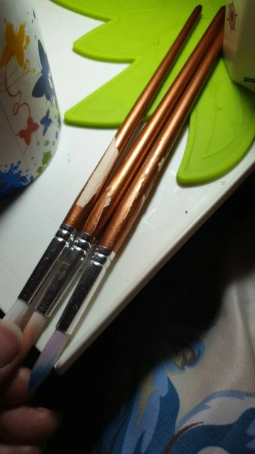 Кисти прибыли с немного согнутыми волосками, так как пакет был сложен сам, но в противном случае они выглядят хорошо.