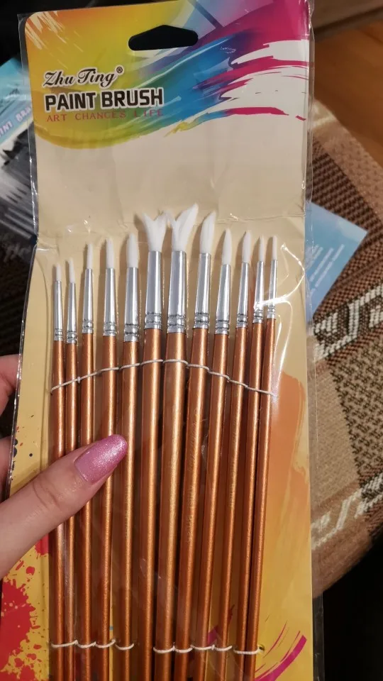 Товар пришёл вовремя, быстро. Качество кистей хорошее, упаковка была хорошая, но кто-то её согнул и повредился ворс двух кистей, они ралохматились и обратно не востанавливаются