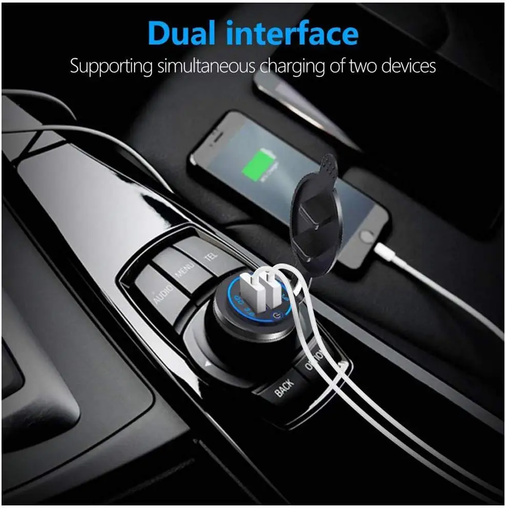 Автомобильное зарядное устройство QC3.0 с двумя USB-портами, кабель 60 см с предохранителем для автомобилей, лодок, мотоциклов, грузовиков, кроссоверов, UTV, 12 В24 В