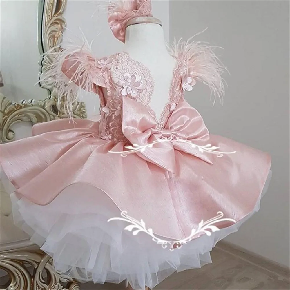 Платья для девочек с цветочным рисунком на свадьбу, Розовое Кружевное бальное платье без рукавов с оборками и круглым вырезом, платья до колен для первого причастия и конкурса