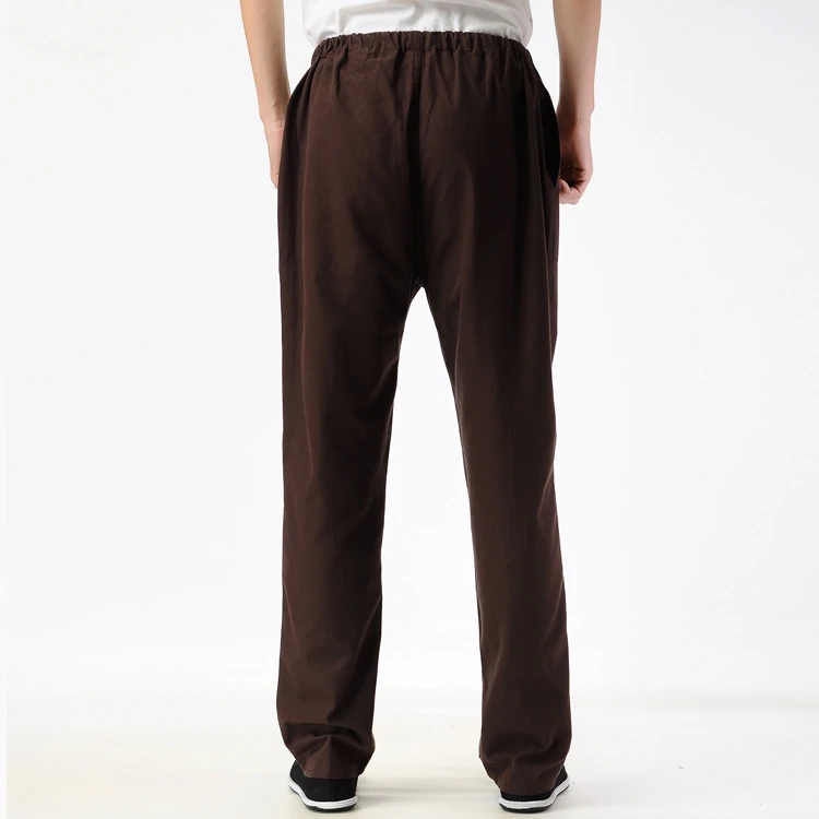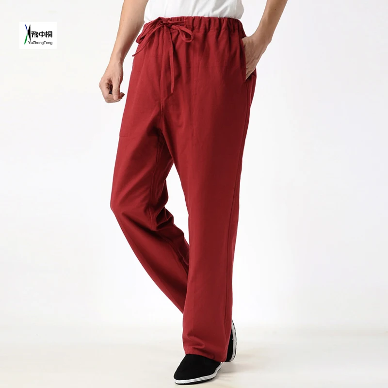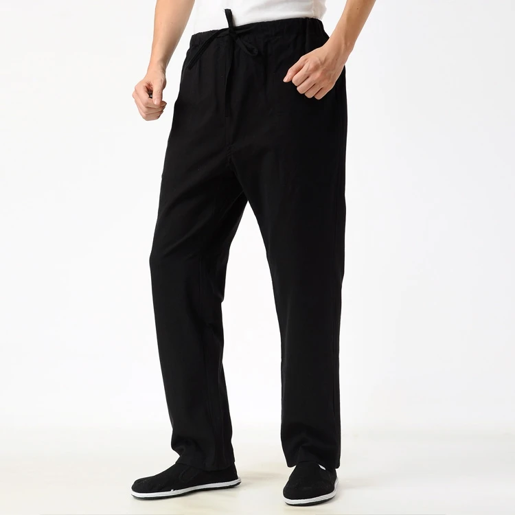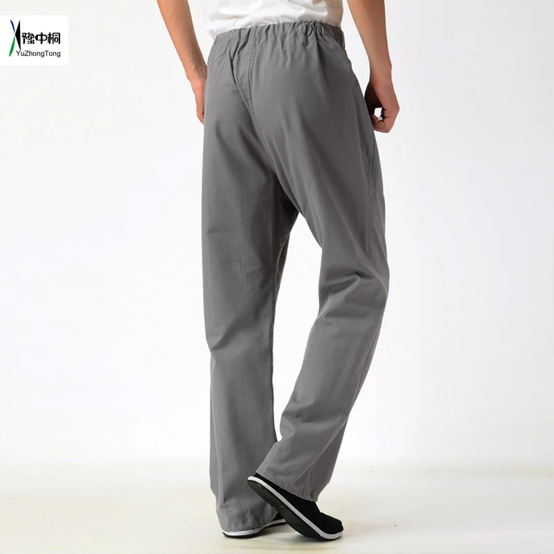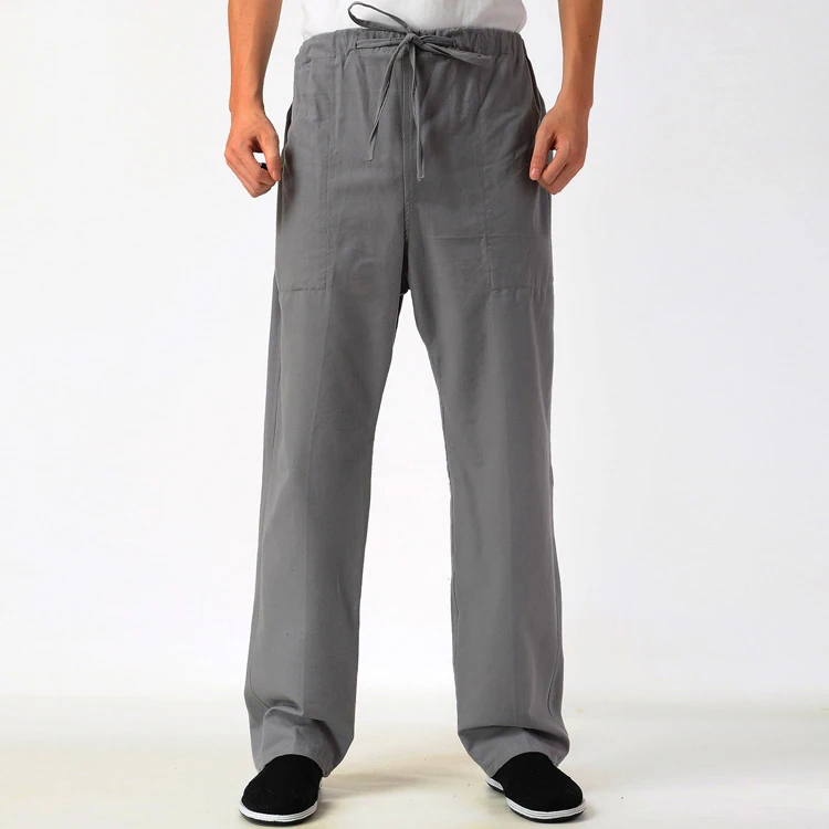 Длинные брюки из 100% хлопка, в китайском традиционном стиле кунг-фу, у Шу, Тай-Чи, с эластичной талией, свободные, серые, мужские, длинные брюки