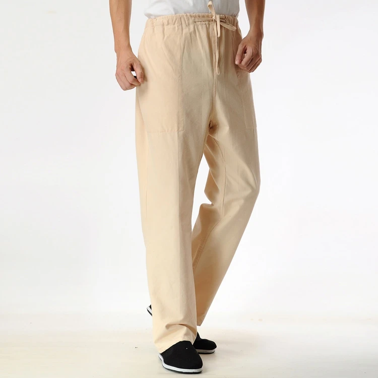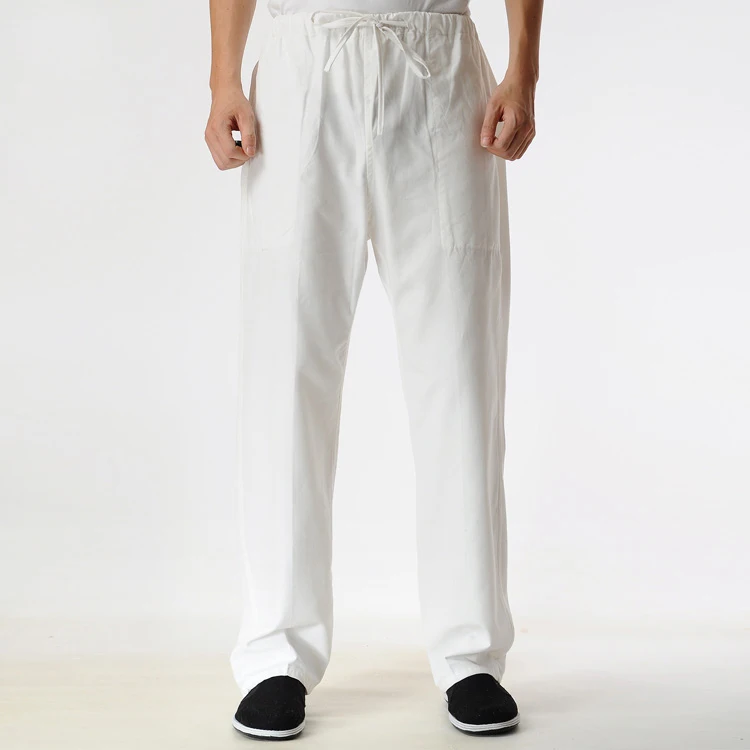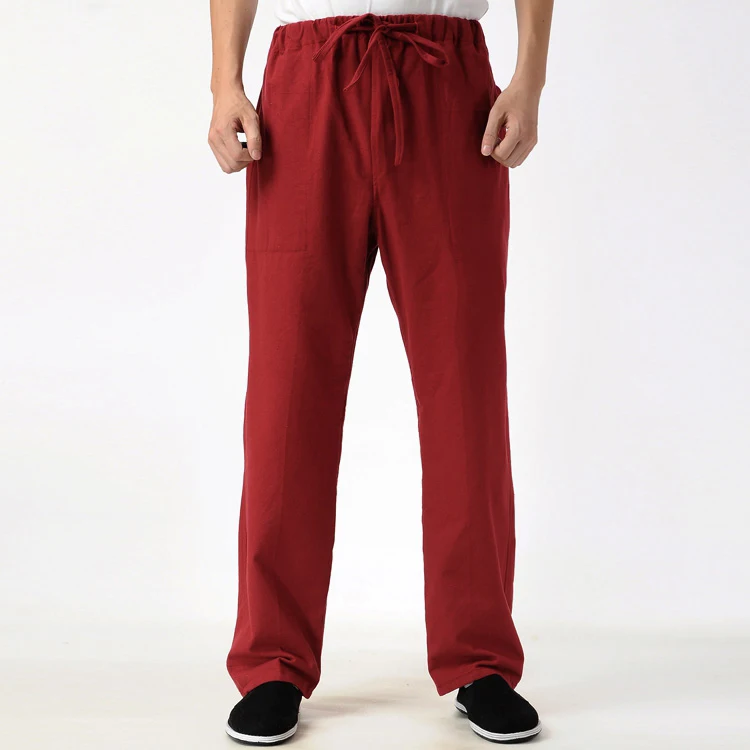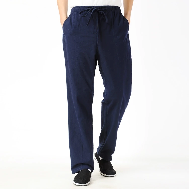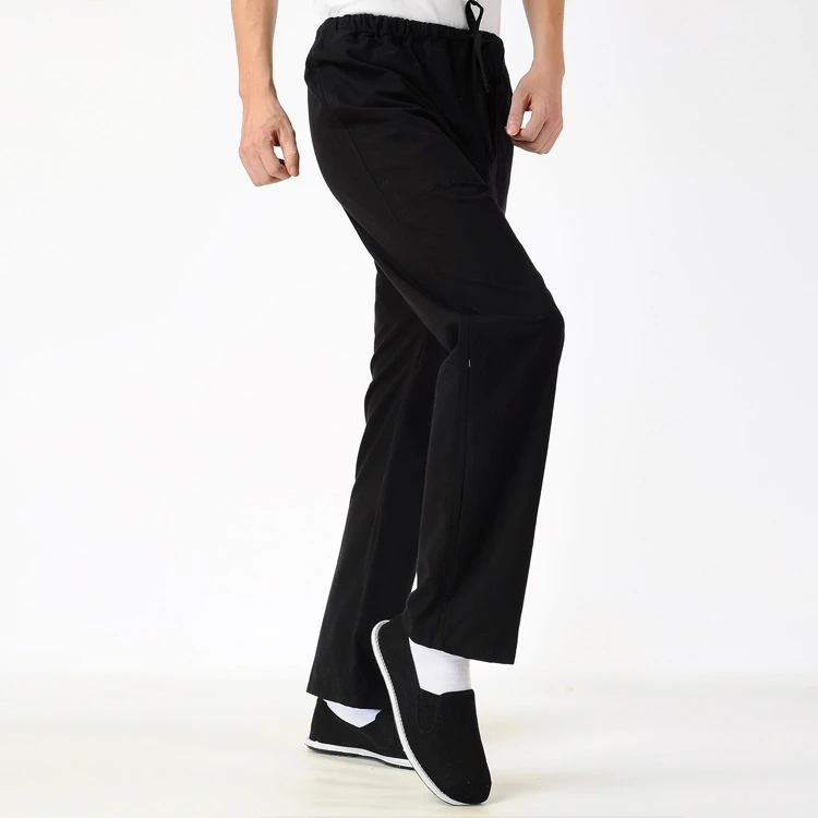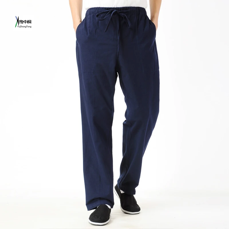 Длинные брюки из 100% хлопка, в китайском традиционном стиле кунг-фу, у Шу, Тай-Чи, с эластичной талией, свободные, серые, мужские, длинные брюки