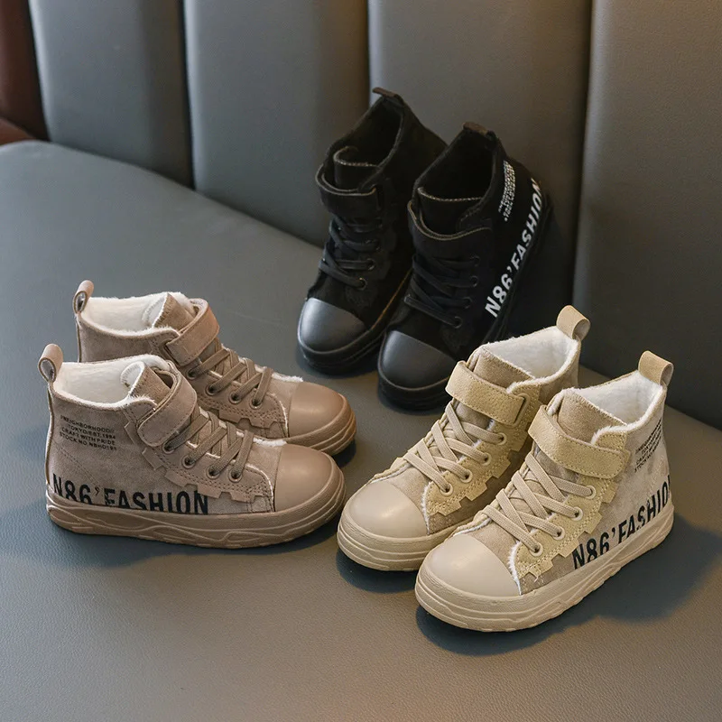 Детская повседневная обувь 2020, хлопковые ботинки для мальчиков, зимняя теплая обувь из хлопка, однотонная детская обувь с буквенным принтом