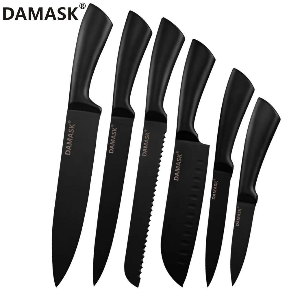 Дамаск 6 шт. набор кухонных ножей столовые приборы из нержавеющей стали шеф-повар нож для чистки овощей полезный шеф-повар сантоку нож для нарезки хлеба