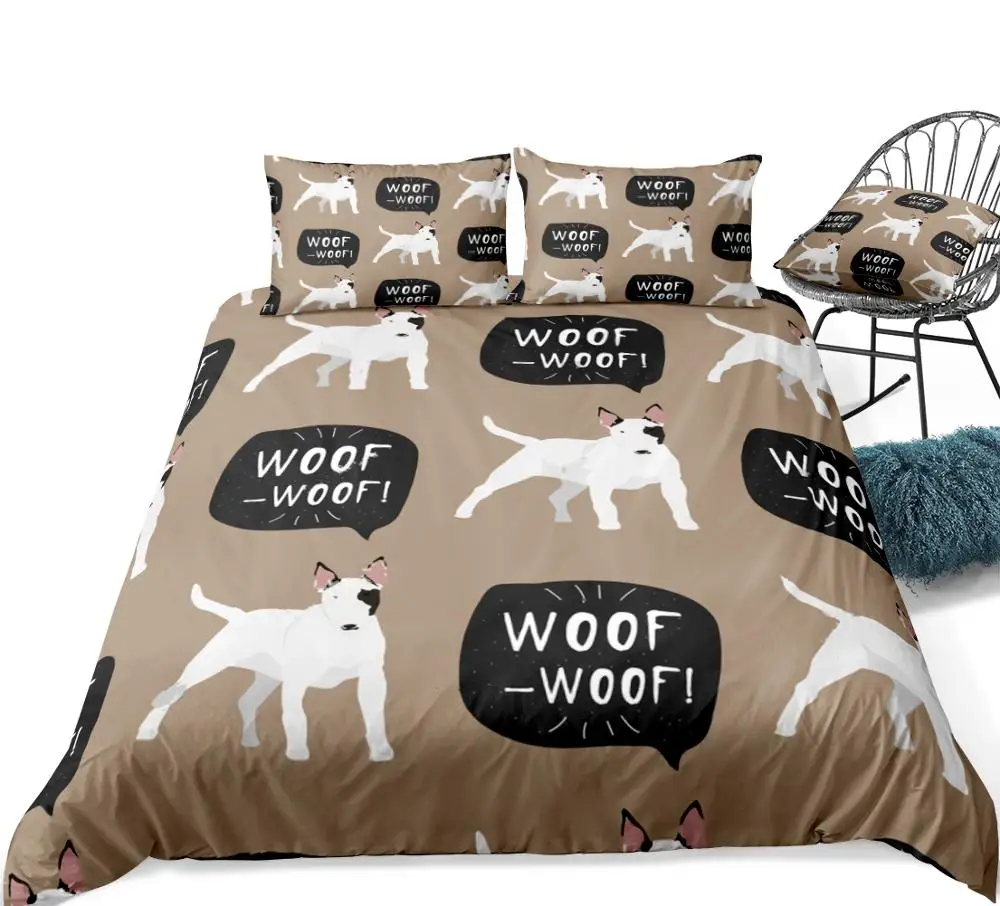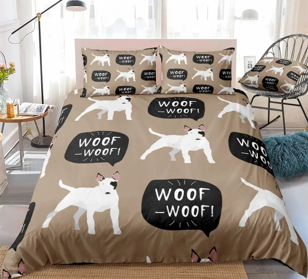 Набор пододеяльников из 3 предметов бултерьер, постельное белье для собак из мультфильма бултерьер, покрывало для белой собаки, двуспальный комплект для домашних животных, Прямая поставка