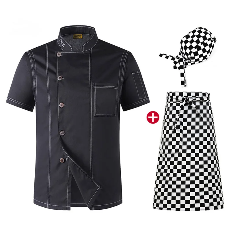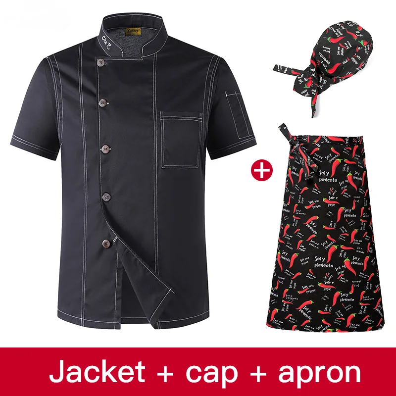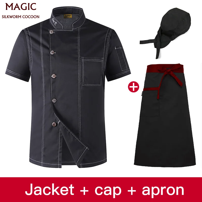 Комбинезон шеф-повара, однотонный, с воротником-стойкой, дышащий, с коротким рукавом, форма для суши, шляпа, фартук