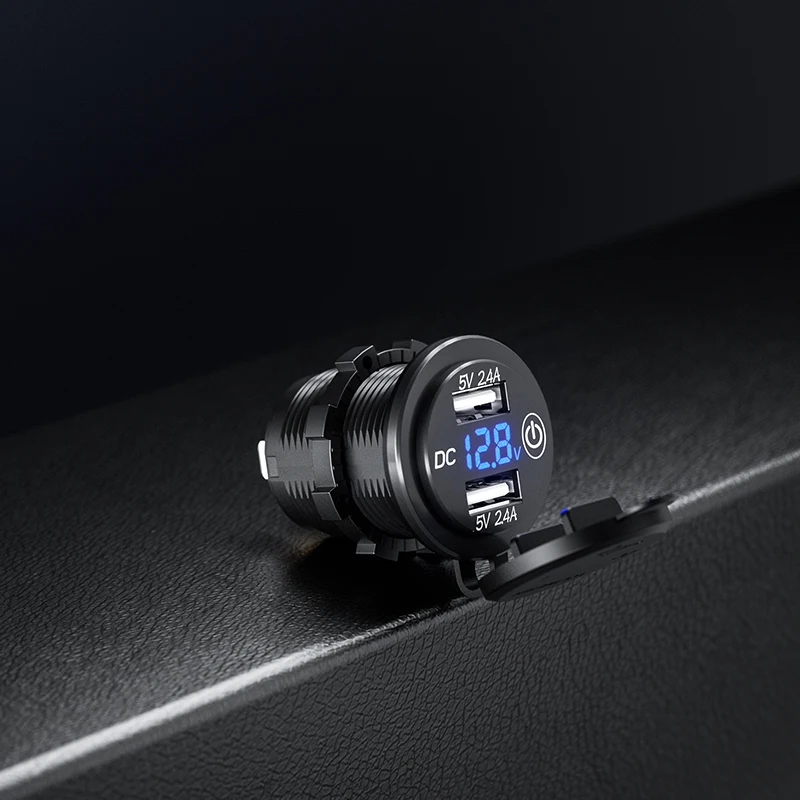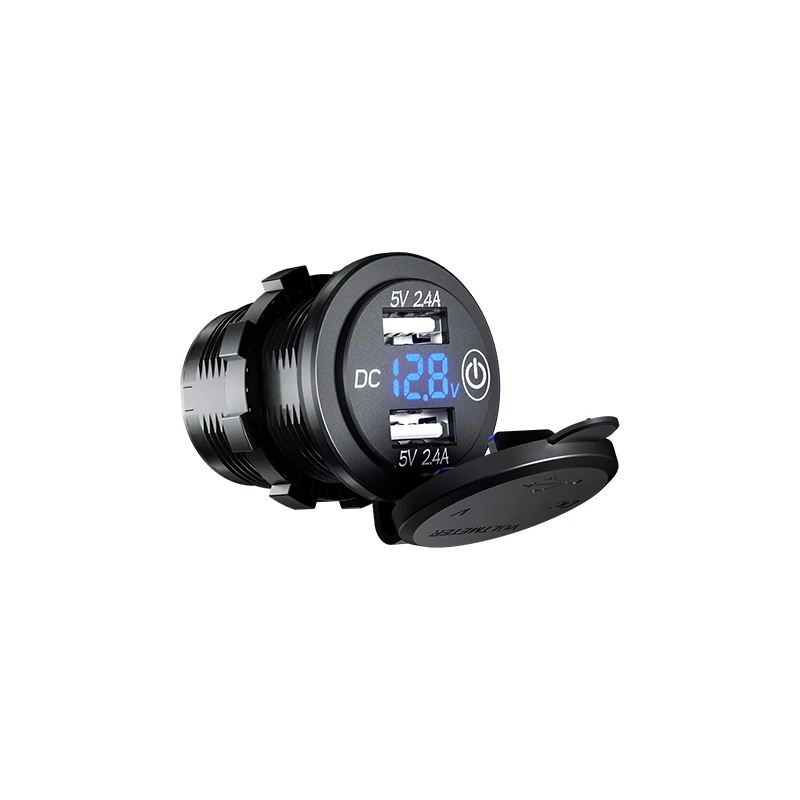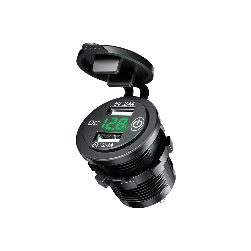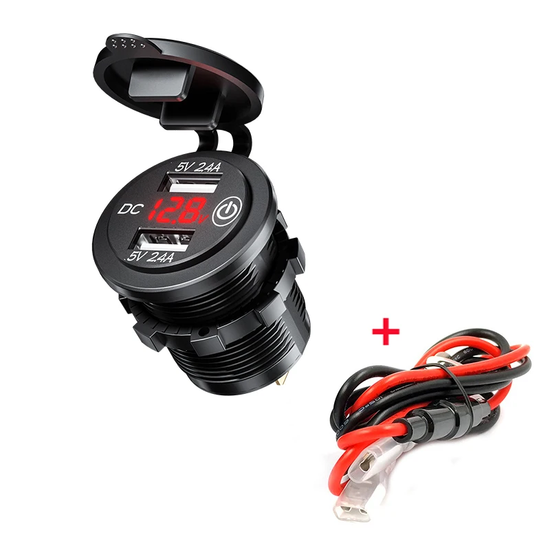 Водонепроницаемое зарядное устройство 24 Вт с двумя USB-портами для автомобиля, с сенсорным выключателем вклвыкл, с вольтметром для автомобиля, автофургона, лодки, морского мотоцикла, мобильного телефона