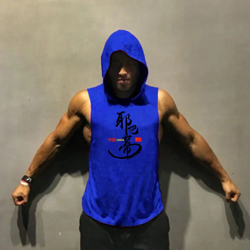 Брендовая спортивная рубашка без рукавов с капюшоном, хлопковая одежда для фитнеса или бодибилдинга