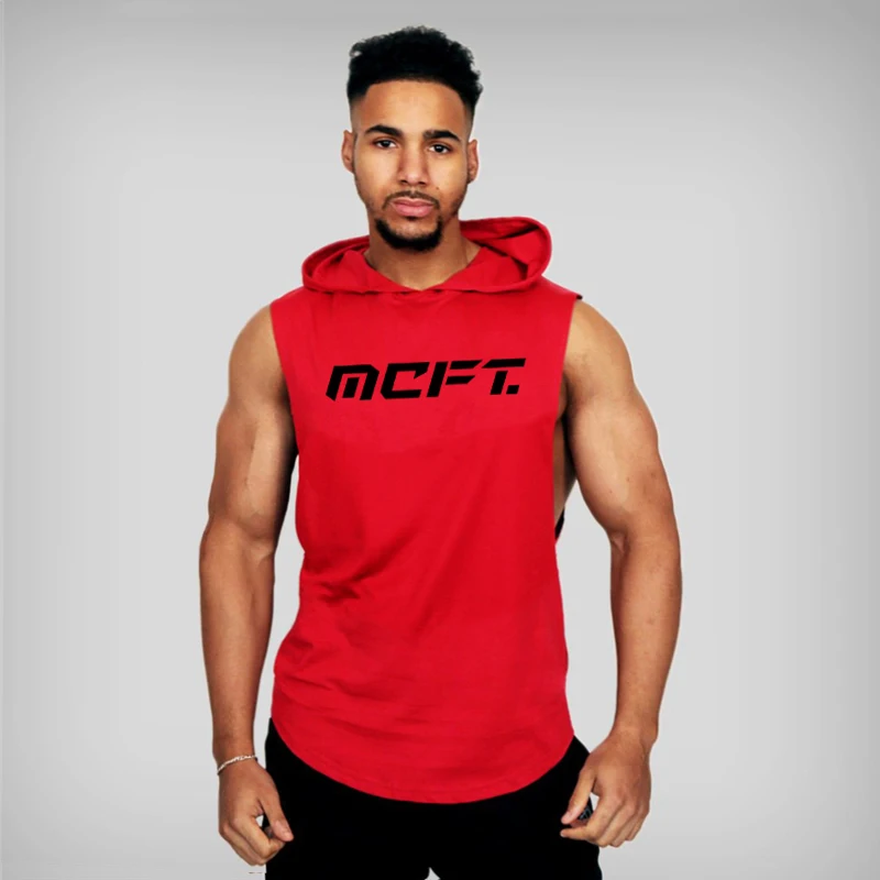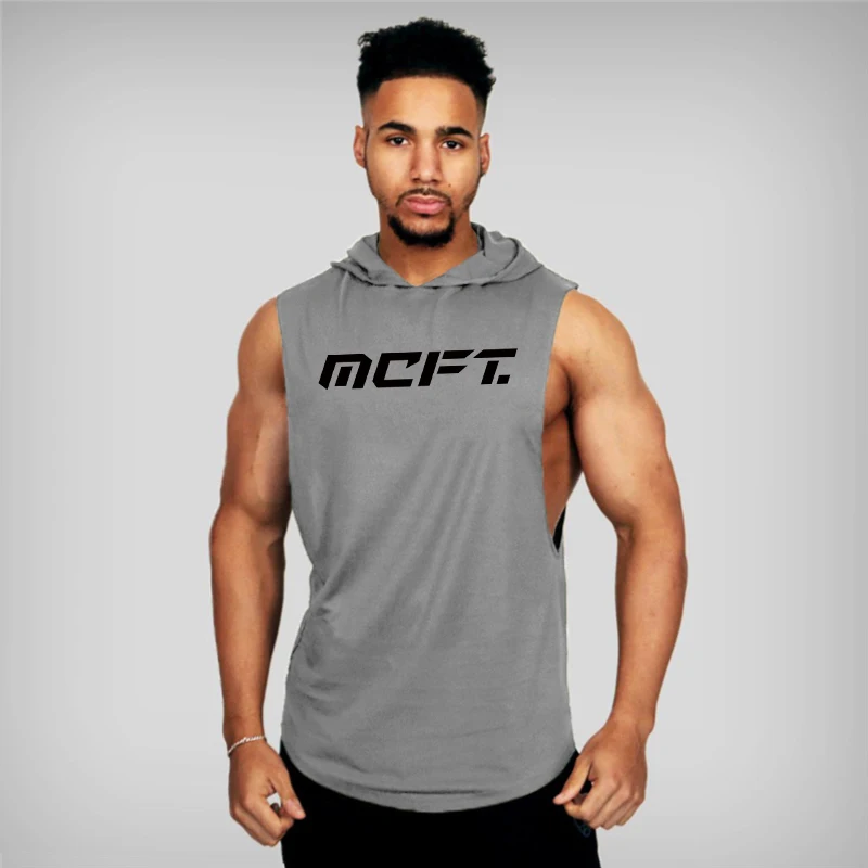 Мужская хлопковая майка для фитнеса, с капюшоном, для занятий спортом